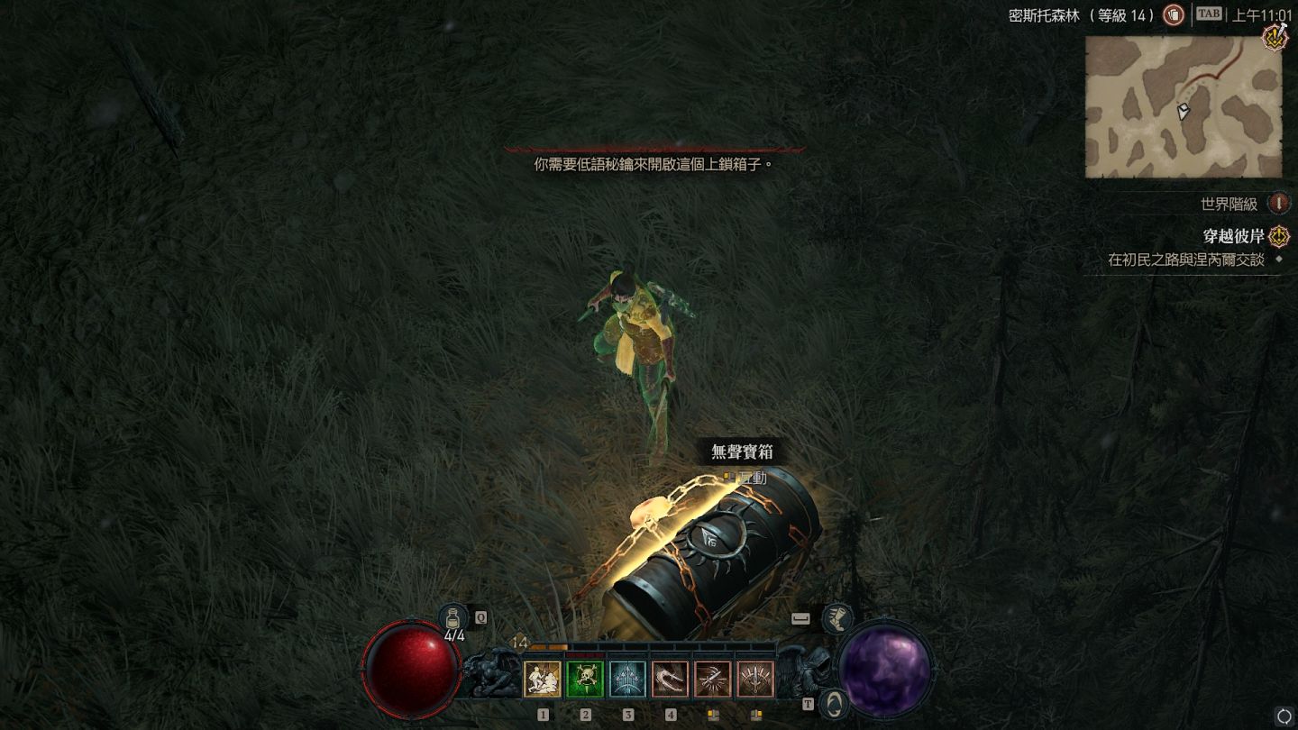 什麼是低語秘鑰? 這《暗黑破壞神4》當中用來開啟無聲寶箱的道具,要獲得秘鑰玩家可以從野外事件當中取得低語古幣,發現無聲寶箱時,可按下「T」鍵傳送回奇歐馬夏,找到奇物商人,低語秘鑰的價格為 20 低語古幣。取得低語秘鑰就能夠回到寶箱處開啟,接下來就是驗證血統的時刻了。