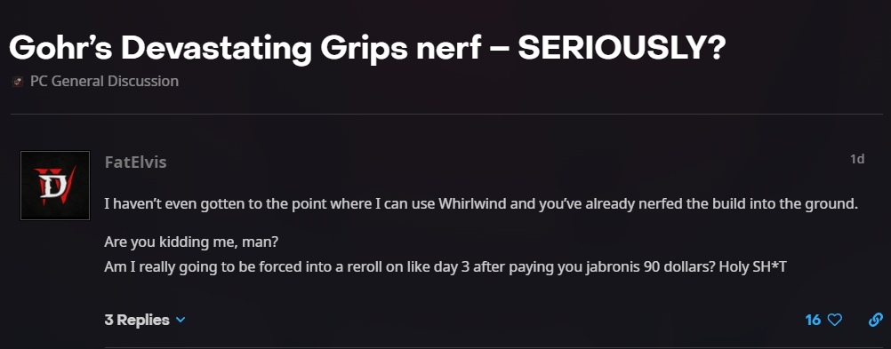 然而也因為這樣,官方隨即發布 hotfix,「立即」‘「暫時」拿掉這個特效,雖然對其 build 影響不大,但後半段農怪效率還是因此下降。官方後來將該手套特效加了回去,但能力已大幅削弱,無法產生如此具決定性的優勢。