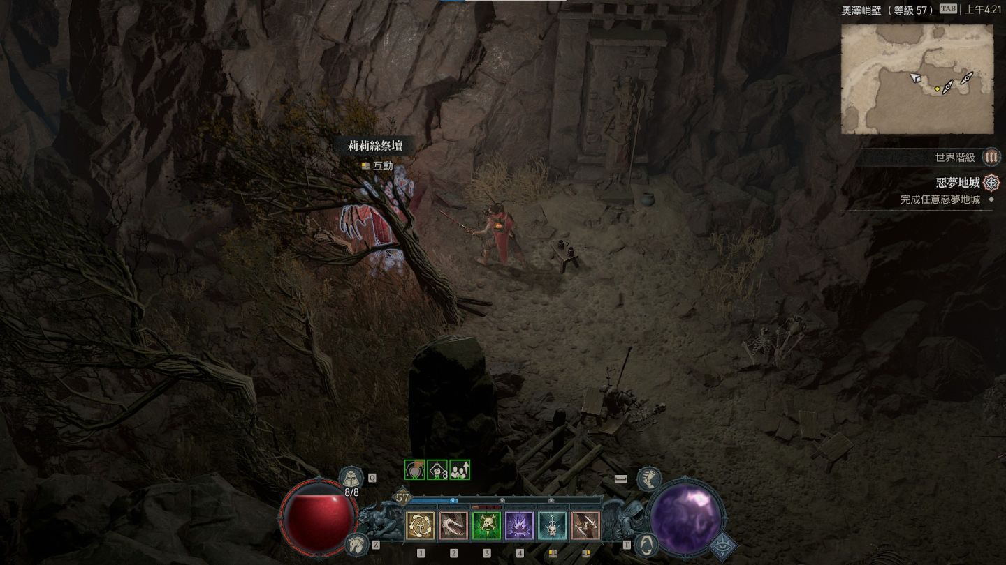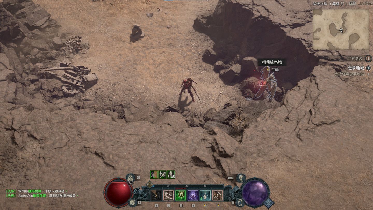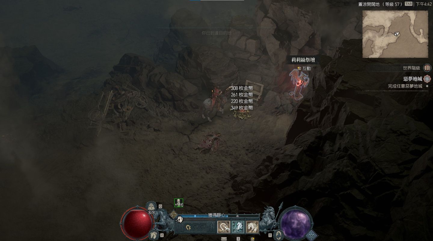 筆者進入世界三時正巧達到五十級,開啟巔峰面板,也因此選擇將各地區聲望衝到滿等,獲得聲望獎勵的4點巔峰點數,而大乾原區域的莉莉絲祭壇可獲得330的聲望點數。並且該區域其中兩個祭壇還能夠額外獲得各一點的巔峰點數,讓玩家能更快的開啟傳奇節點