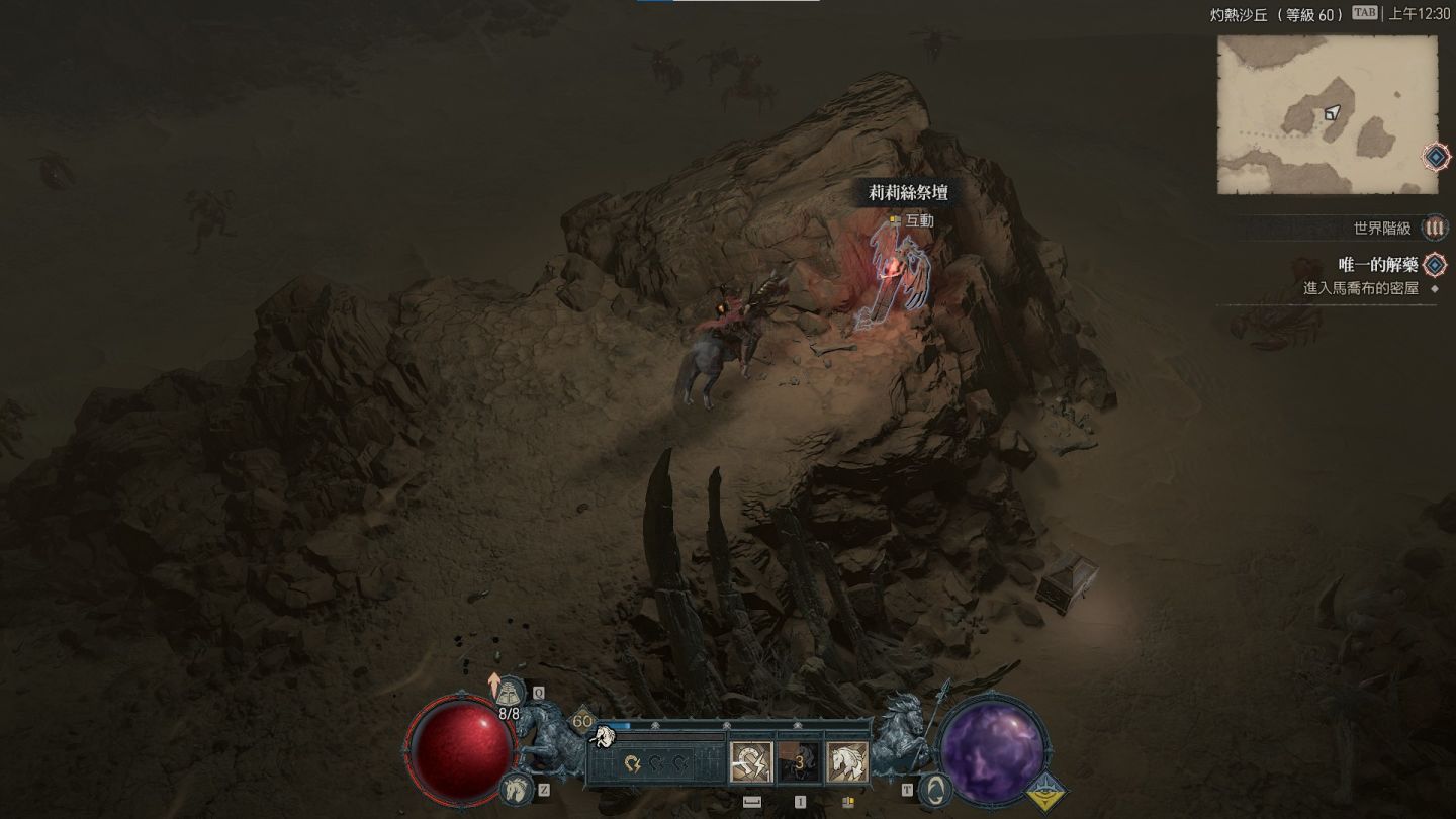 《暗黑破壞神 4》的卡基斯坦是以阿拉伯作為背景架構的沙漠地區,有許多蠍子、駱駝等生物存在於其中,進行主線任務時也會遭遇讓人持續扣血的沙塵暴劇情。不過以探索莉莉絲祭壇的角度來看,大多祭壇還是位居各個彎折的路徑中,玩家不用在荒涼的沙漠中慢慢找尋,可以透過地形的變化和地標來確認自身的位置。