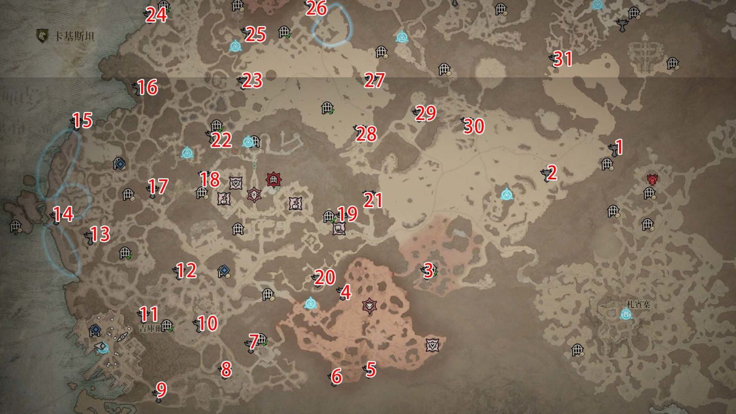 在探索時編號31的祭壇,因為其標記點靠近邊界,有時會被歸類去「大乾原」的祭壇路線。但無論是實際走動,或是在探索後的計算,都確定該祭壇是位於「卡基斯坦」地區無誤。