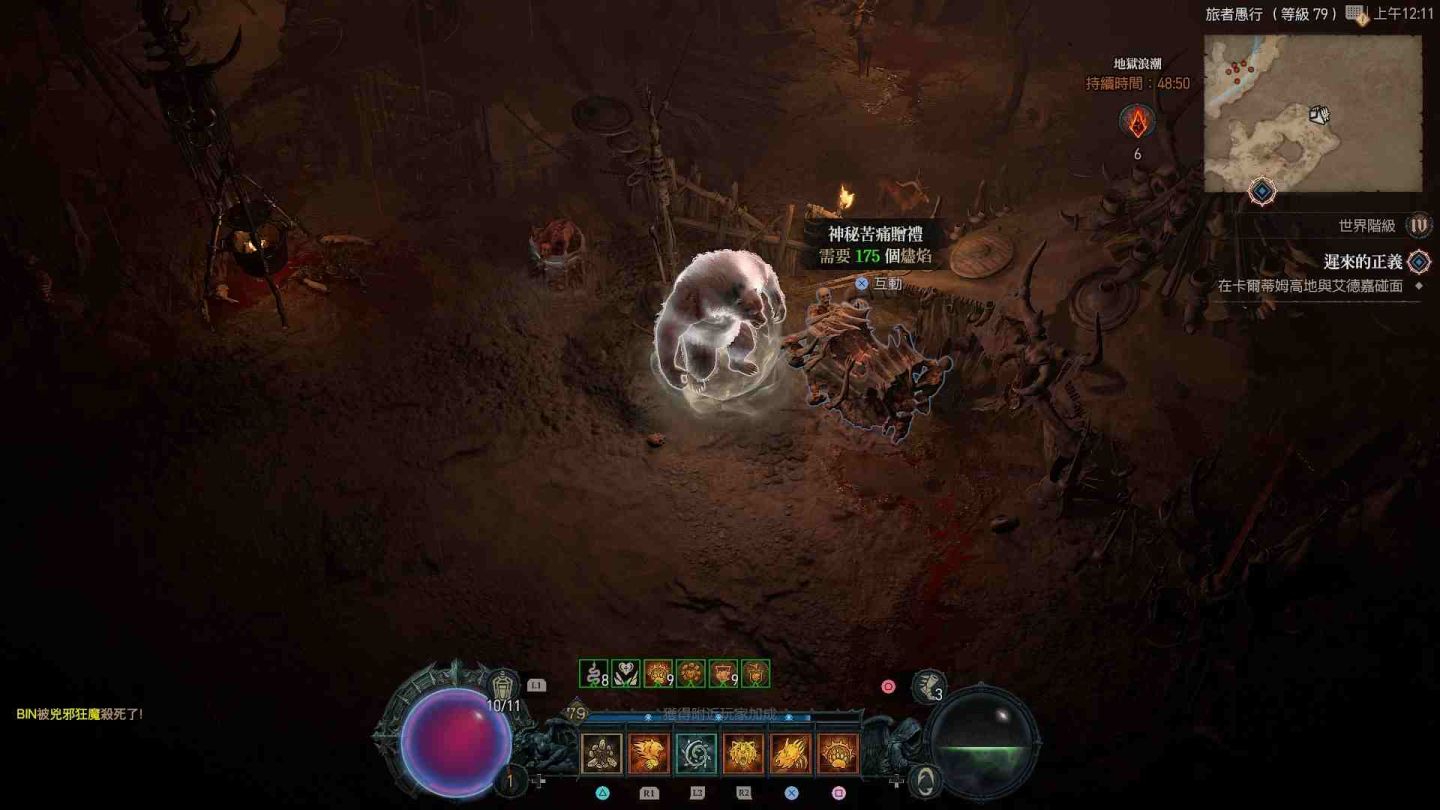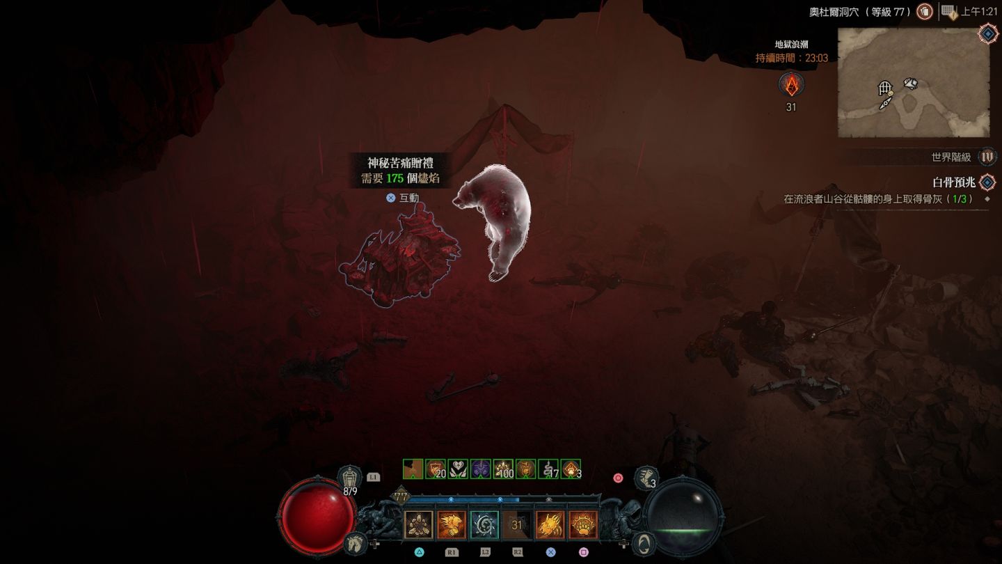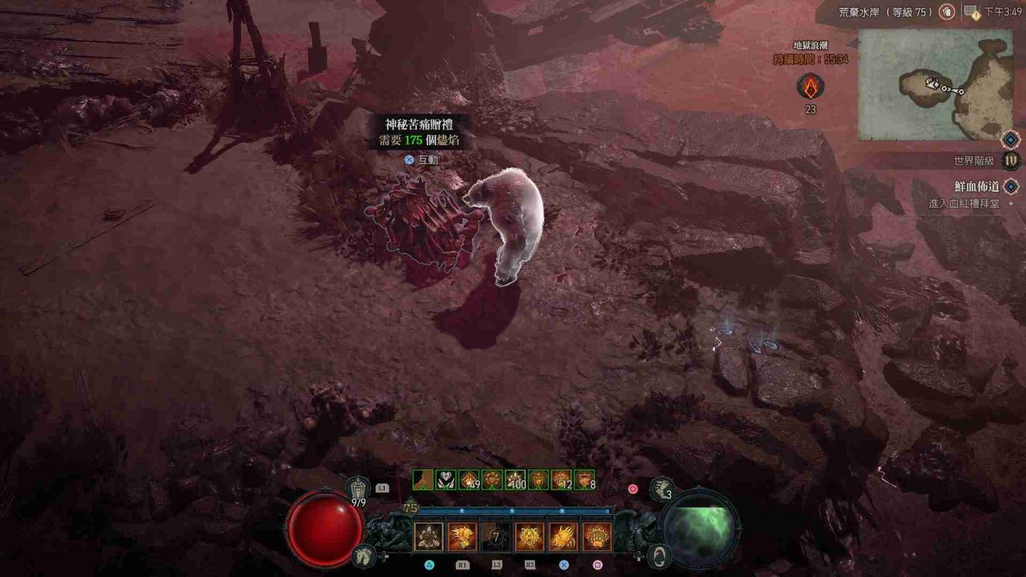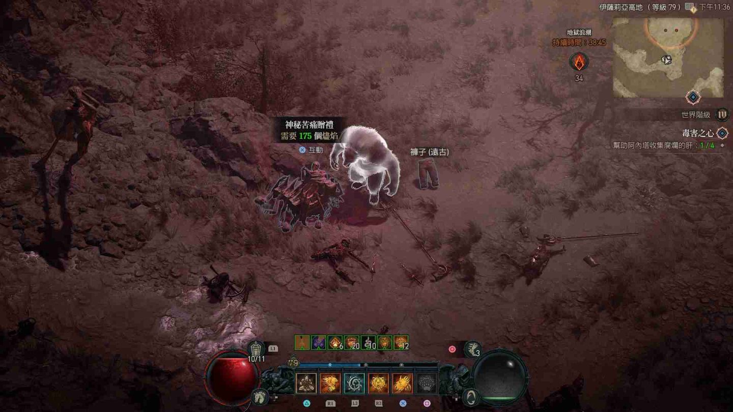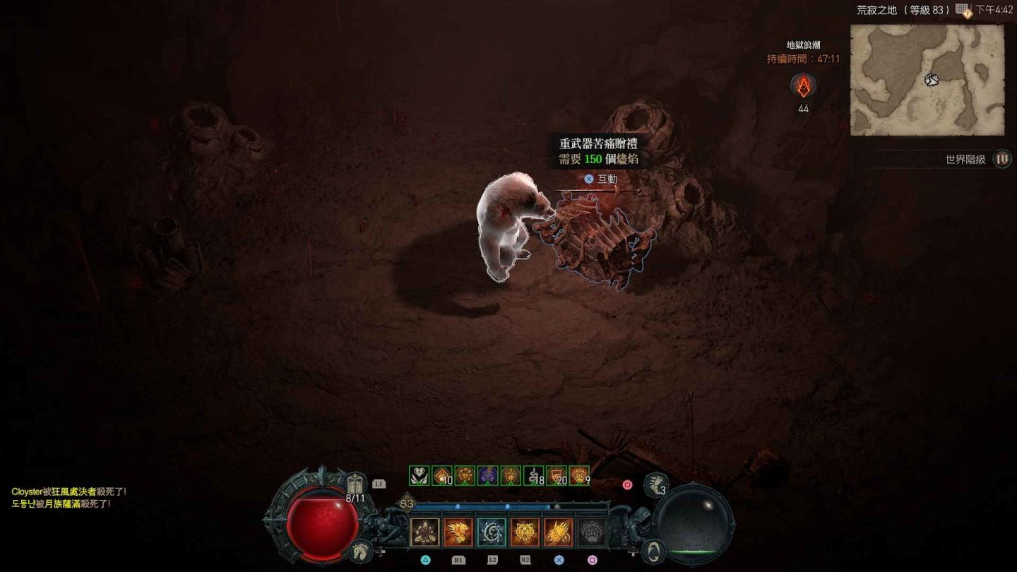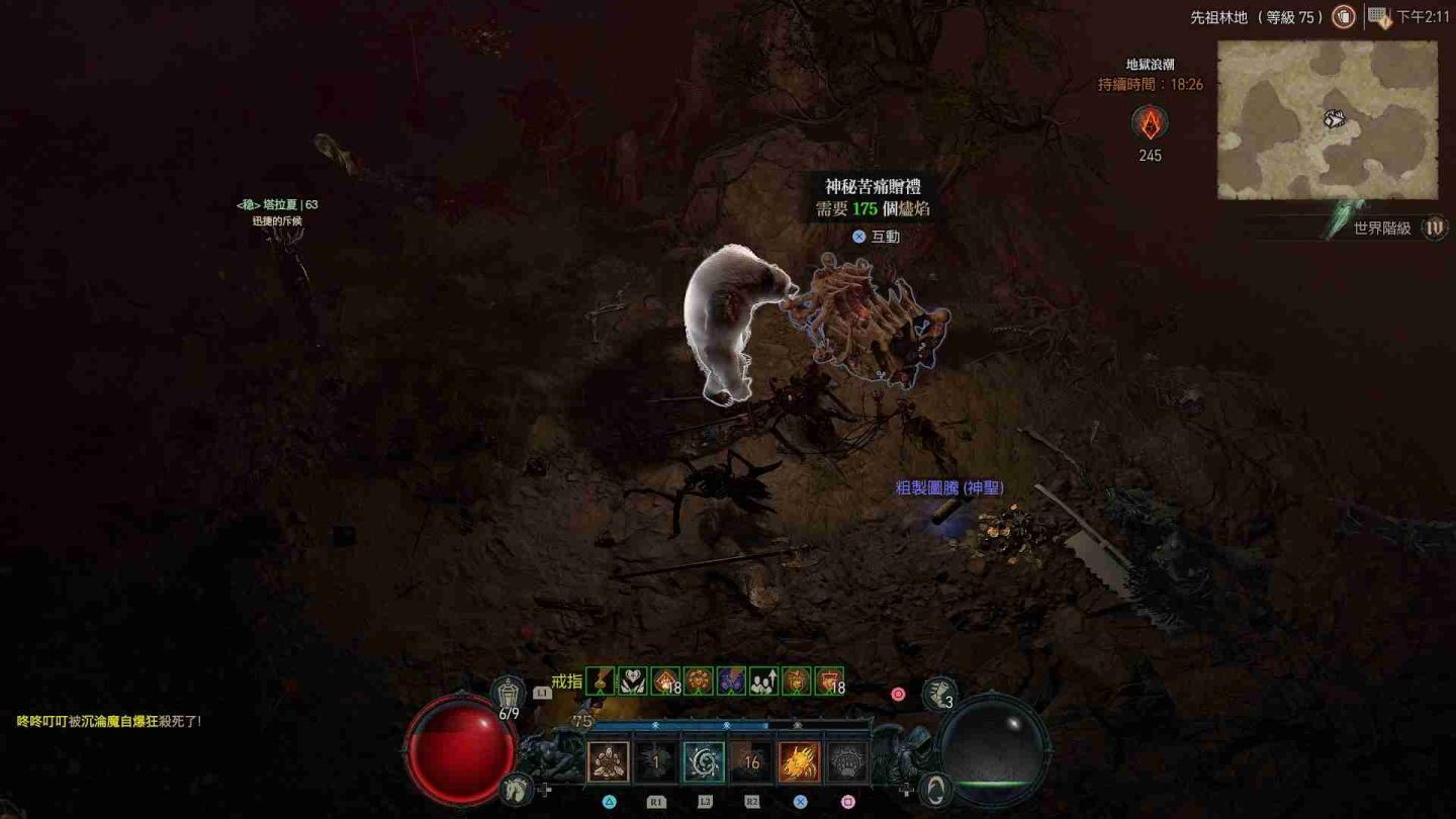 受地獄浪潮影響的區域會在地圖上顯示為血紅色,除了大量惡魔軍團增生外,也會出現各類名為「苦痛贈禮」的寶箱