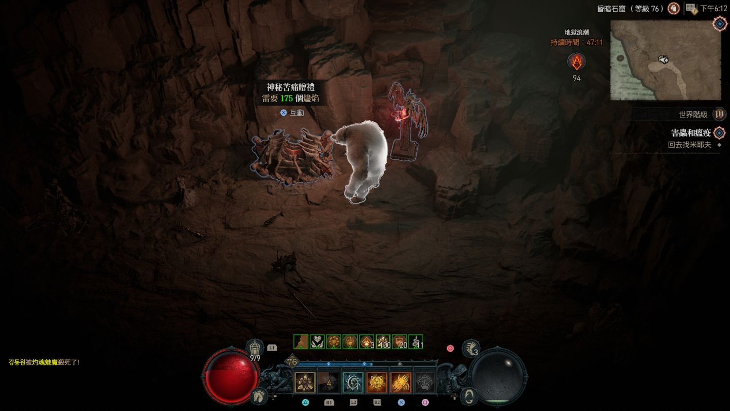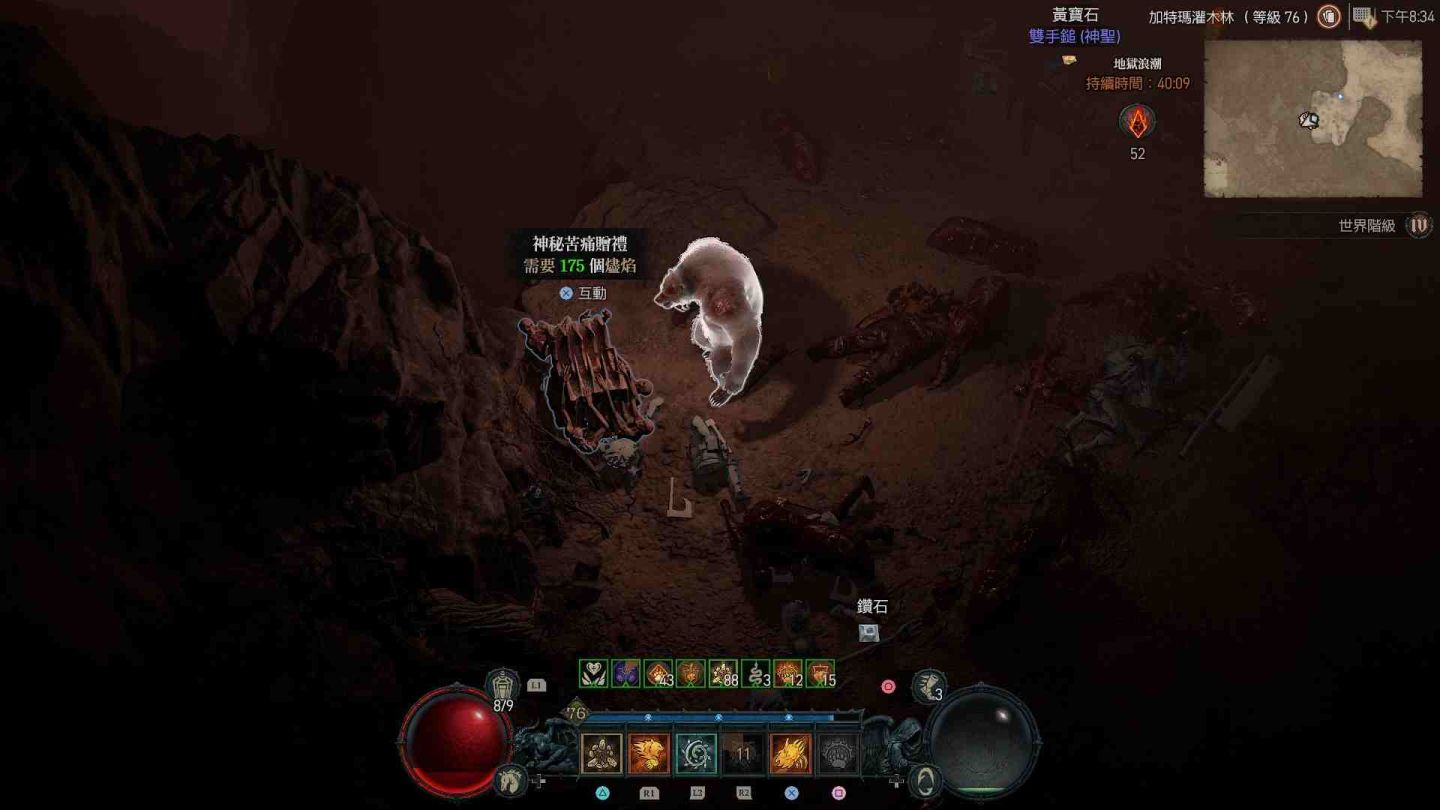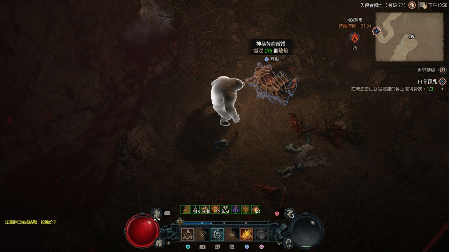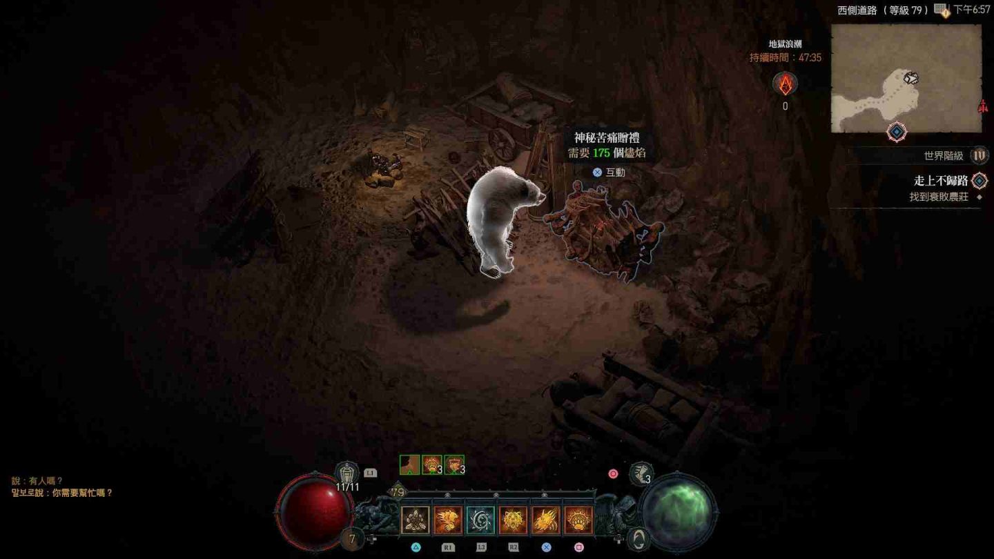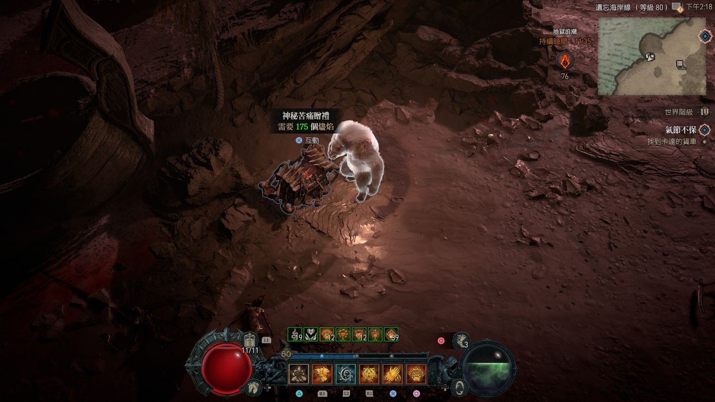 受地獄浪潮影響的區域會在地圖上顯示為血紅色,除了大量惡魔軍團增生外,也會出現各類名為「苦痛贈禮」的寶箱