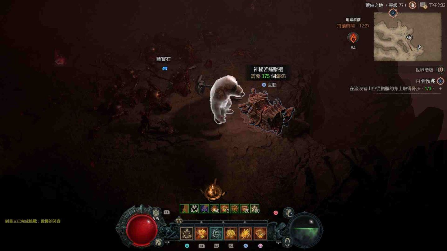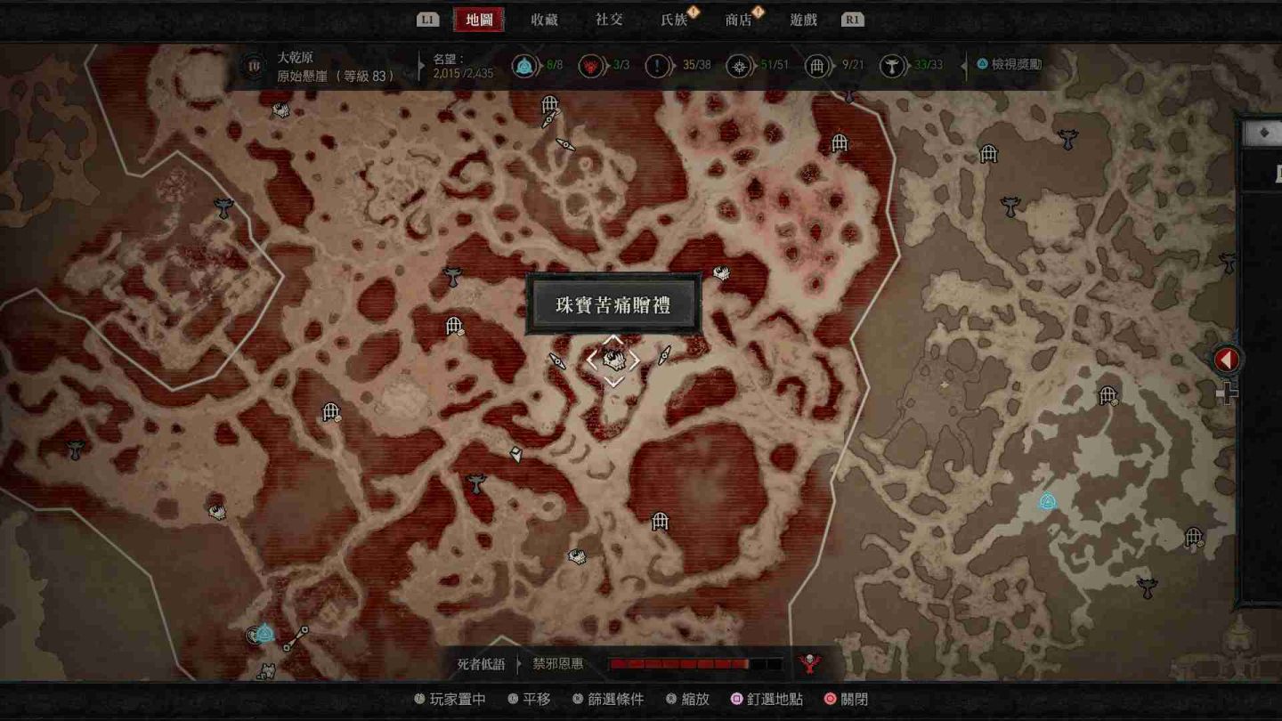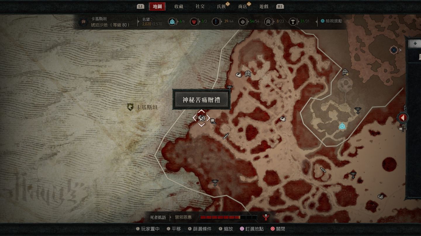 - 原始懸崖神秘苦痛贈禮:傳送點東方「荒寂之地」以及西北方「加特瑪灌木林」邊緣區域。