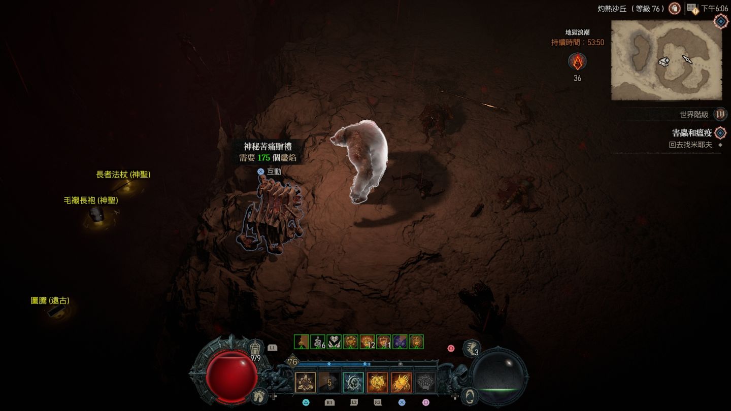 - 琥珀沙地神秘苦痛贈禮:傳送點南方「灼熱沙丘」高地區兩處以及西方的「遺忘海岸線」邊緣區。
