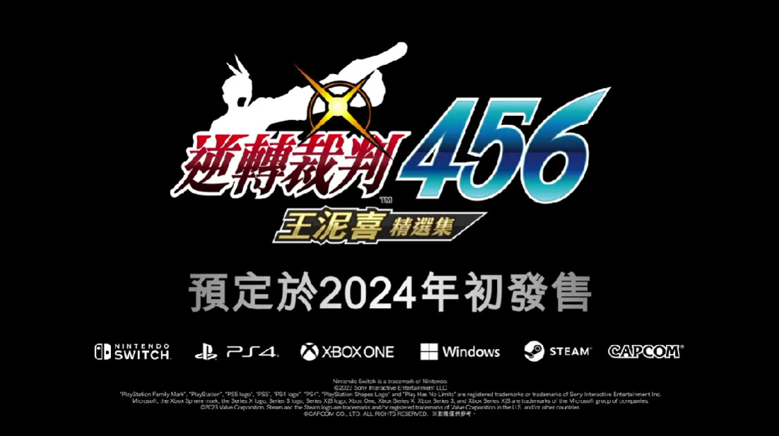 CAPCOM 宣布,法庭戰鬥遊戲《逆轉裁判》系列三部作品集合為一的《逆轉裁判456 王泥喜精選集》將於 2024 年初發售!描繪了新人律師王泥喜法介的成長故事和法律的黑暗時代的這三部作品,即將在 Nintendo Switch、PlayStation4、Xbox One、Windows 和 Steam 上復活。