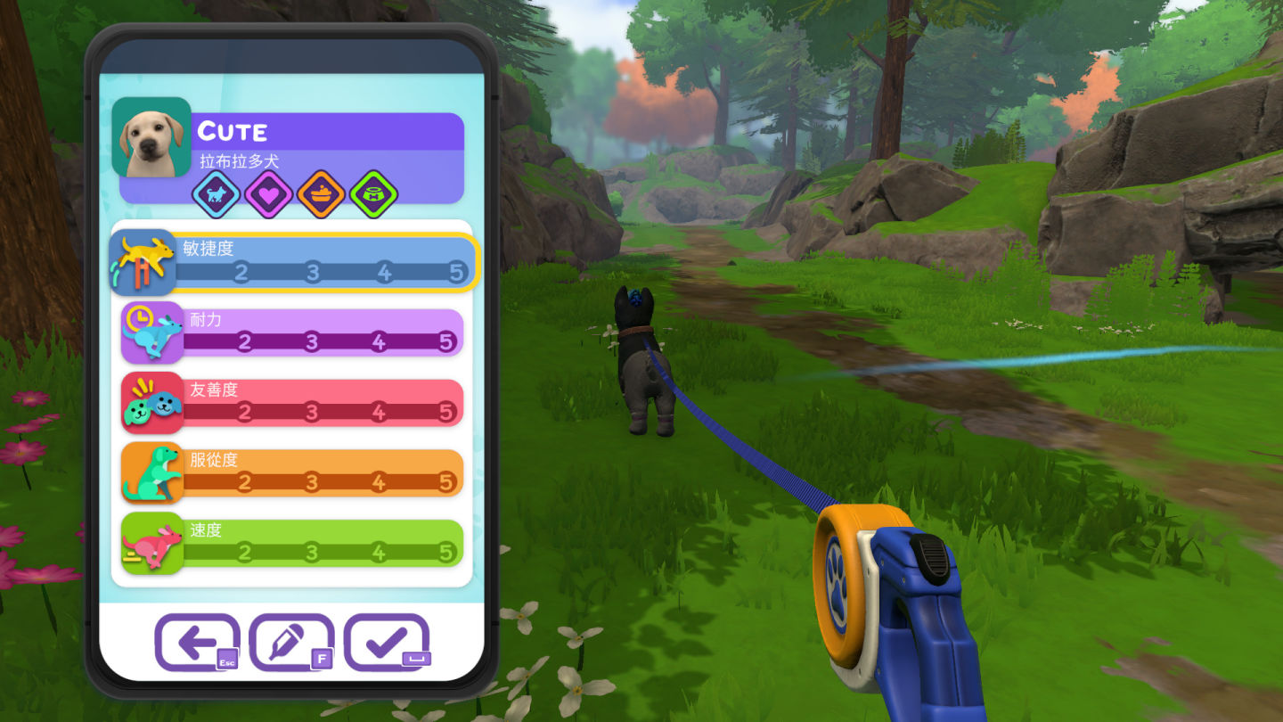 在散步時完成不同任務,可以提升小狗們以下的能力值: