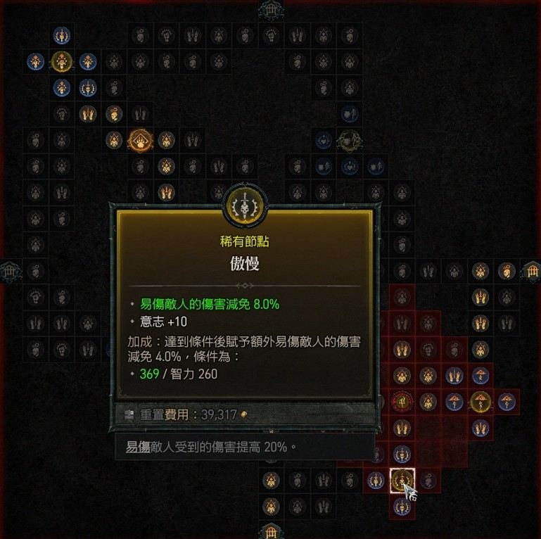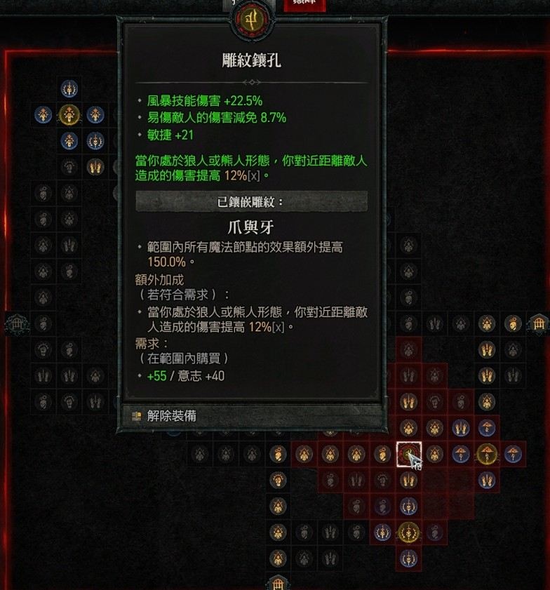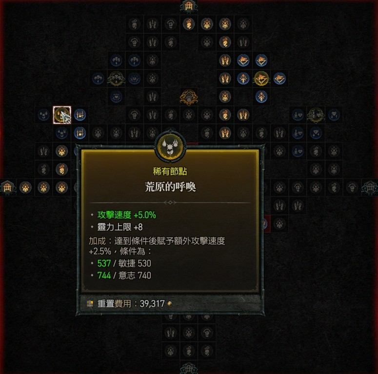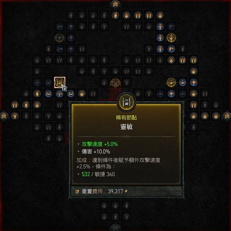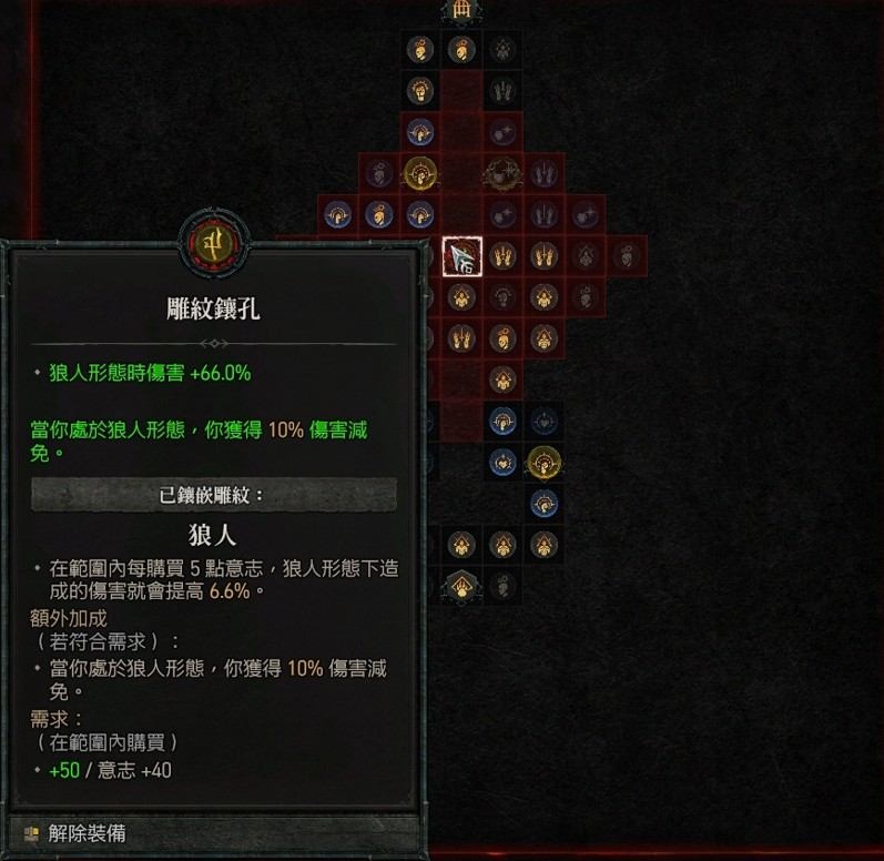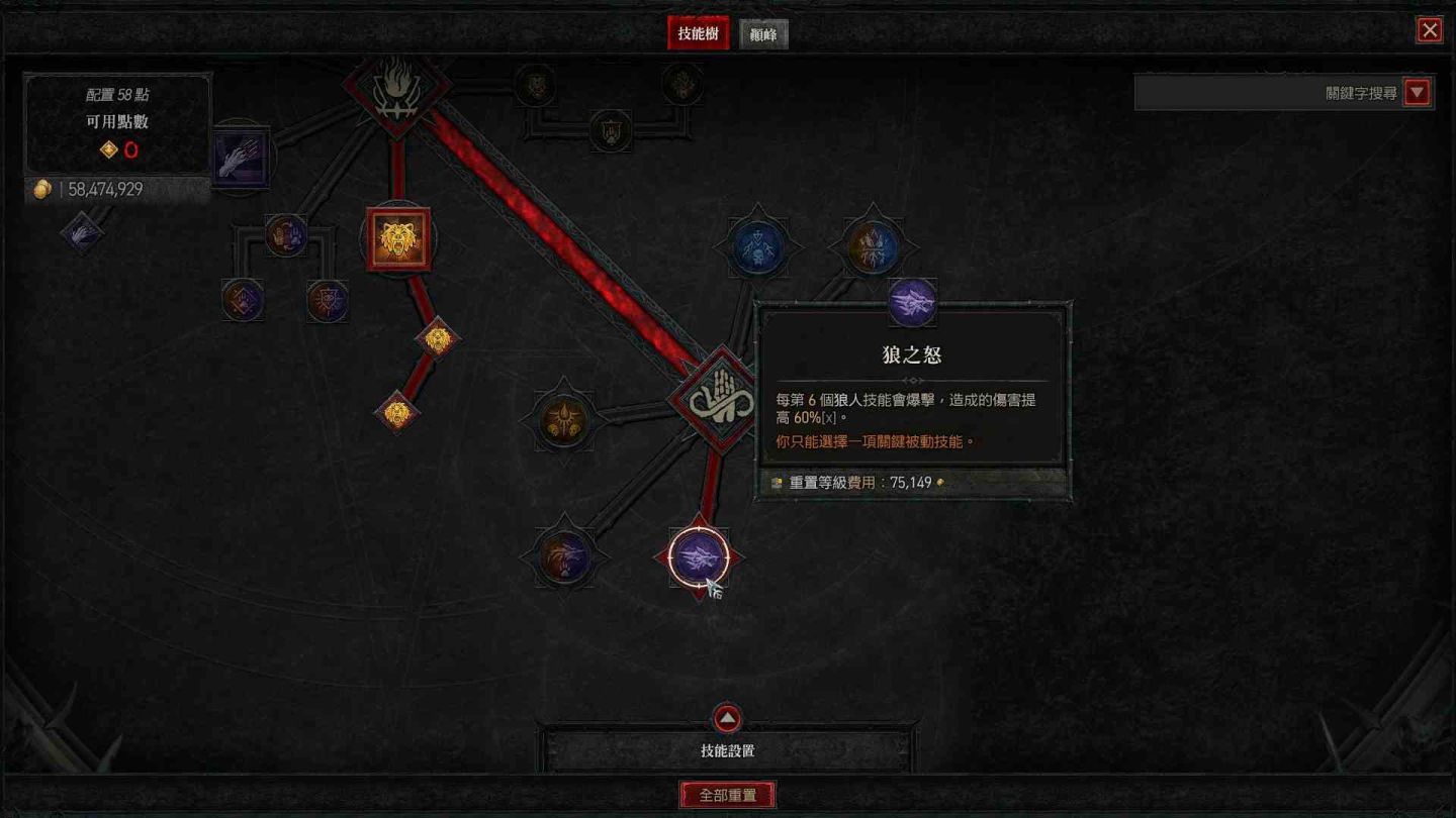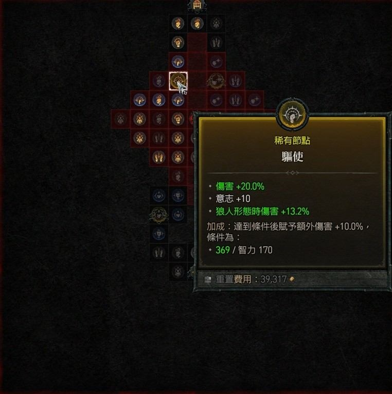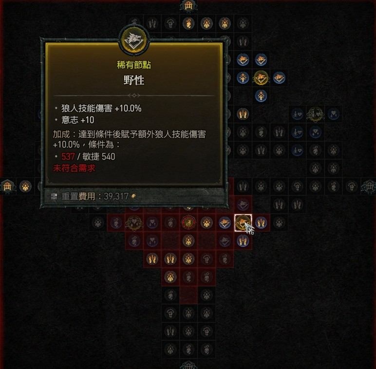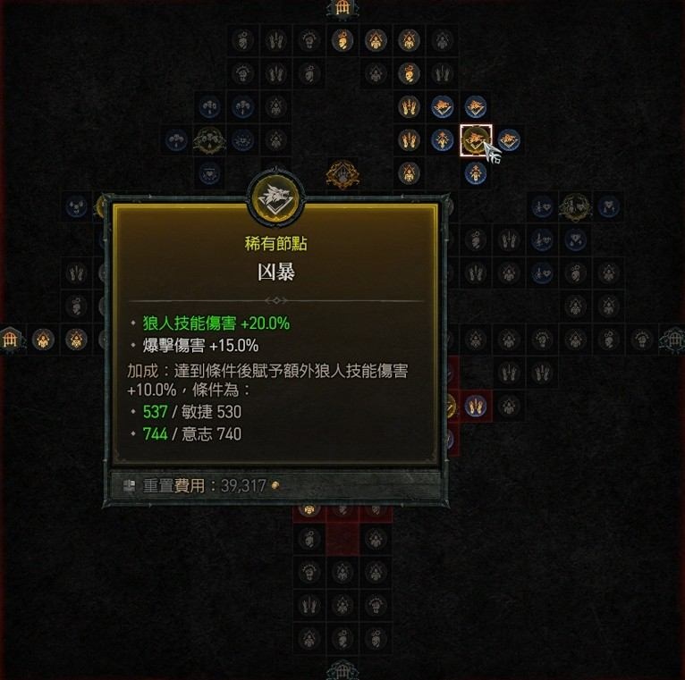 解開攻速提升以及狼人技能傷害的稀有節點,