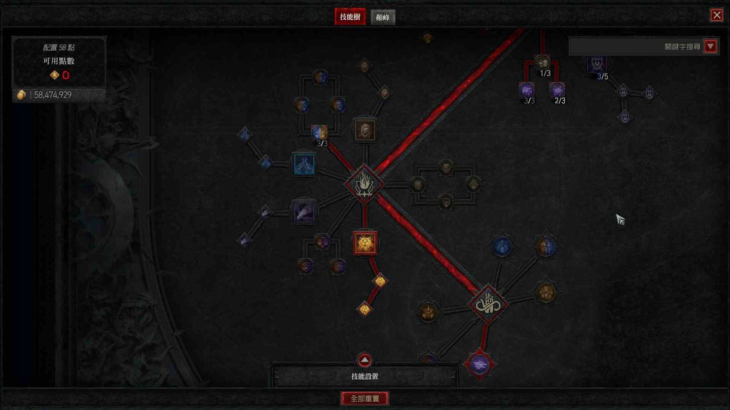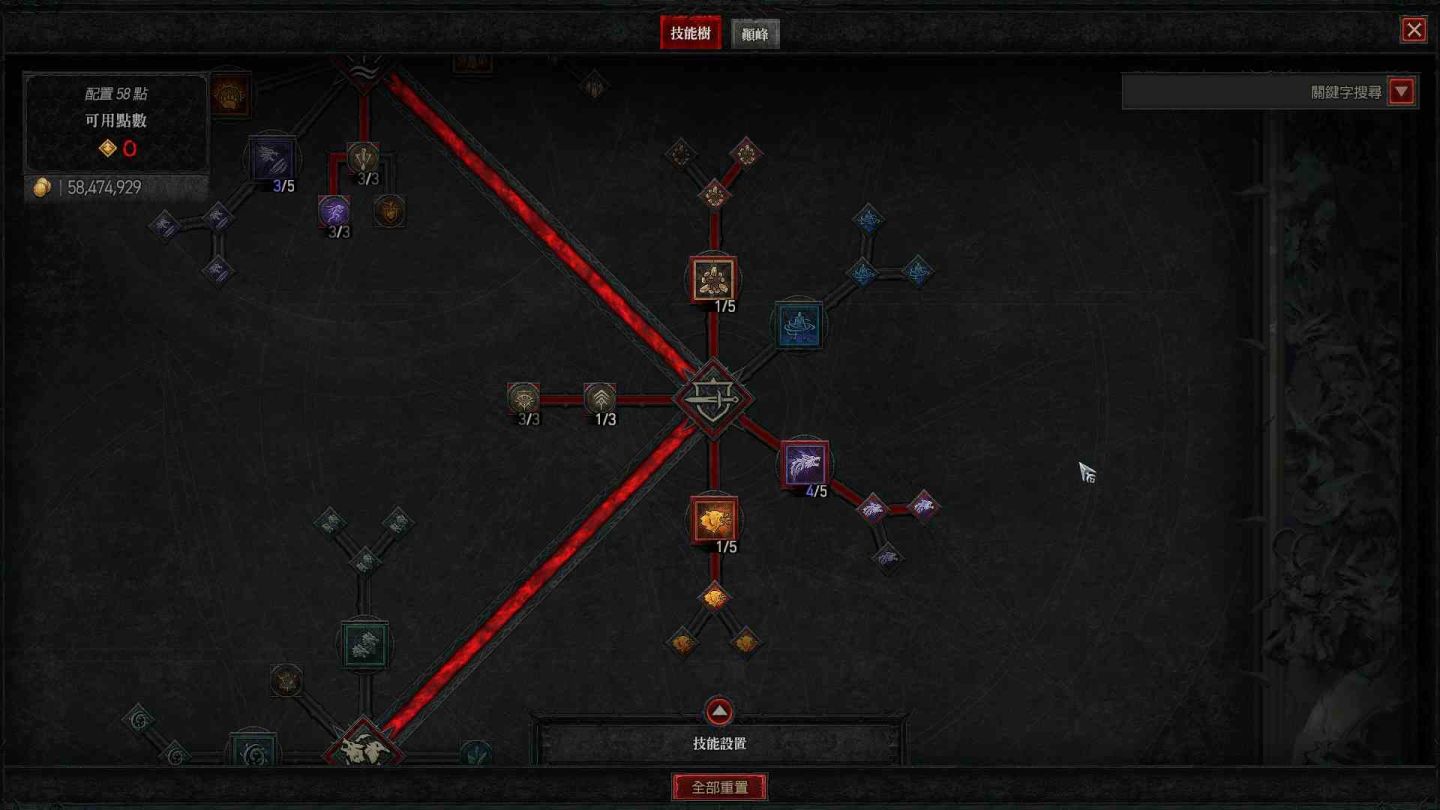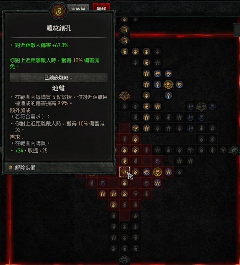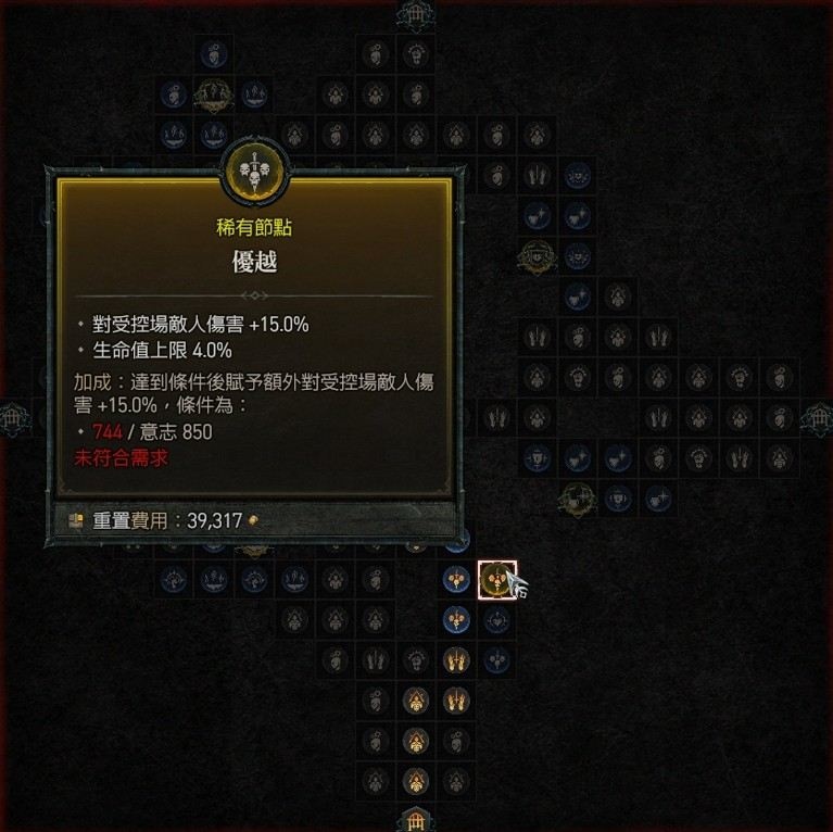 該塊面板有爆擊傷害、攻速以及變形技能傷害提升,但傳奇節點無用不必投資。