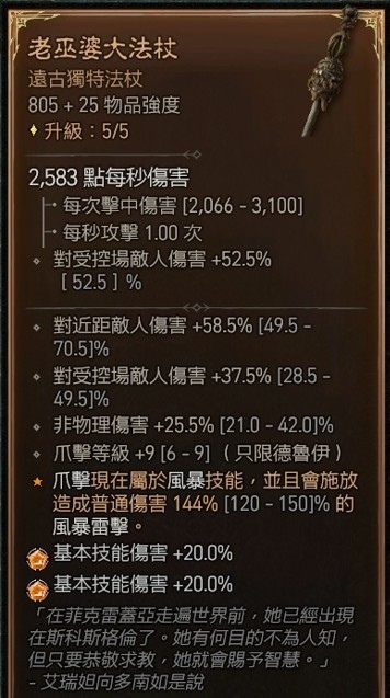 「風暴怒號」會讓颶風術的每下傷害都視為狼人攻擊,進步提升觸發被動的頻率,攻速和爆擊傷害會為這項玩法帶來大幅度的提升。