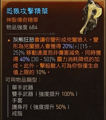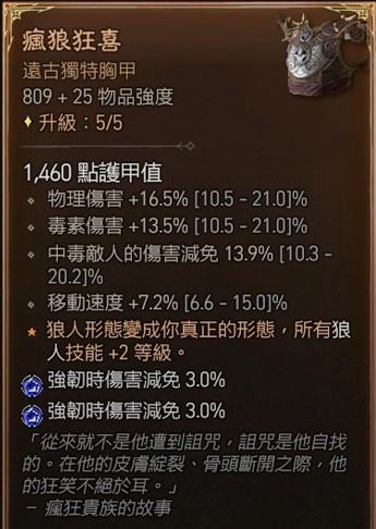 全狼人技直接提升 2 級,簡單又暴力,沒有的話使用自行調整過後的傳奇胸甲可替代