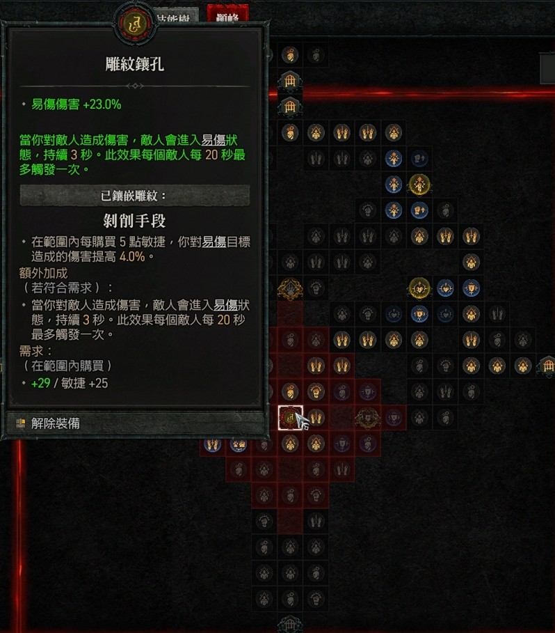 雕紋建議「剝削手段」獲取易傷效果,這邊先從右側拓展新板塊。