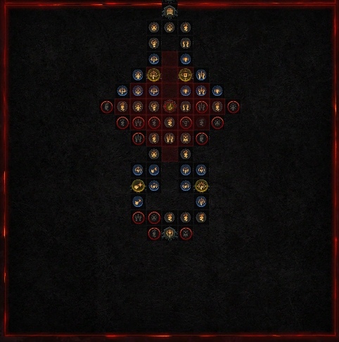 最初的面板盤比較沒什麼問題:點出雕紋節點、所有稀有節點、面板連結柵口,這三個是最優先項目。路線選擇都以最短路線為主,但如果有非常值得點的藍色魔法節點,或是差一兩個節點就能開出雕紋額外能力也可以點下去。
