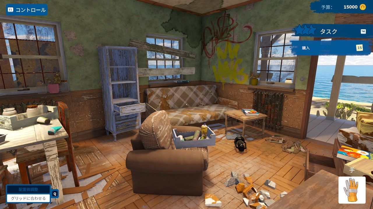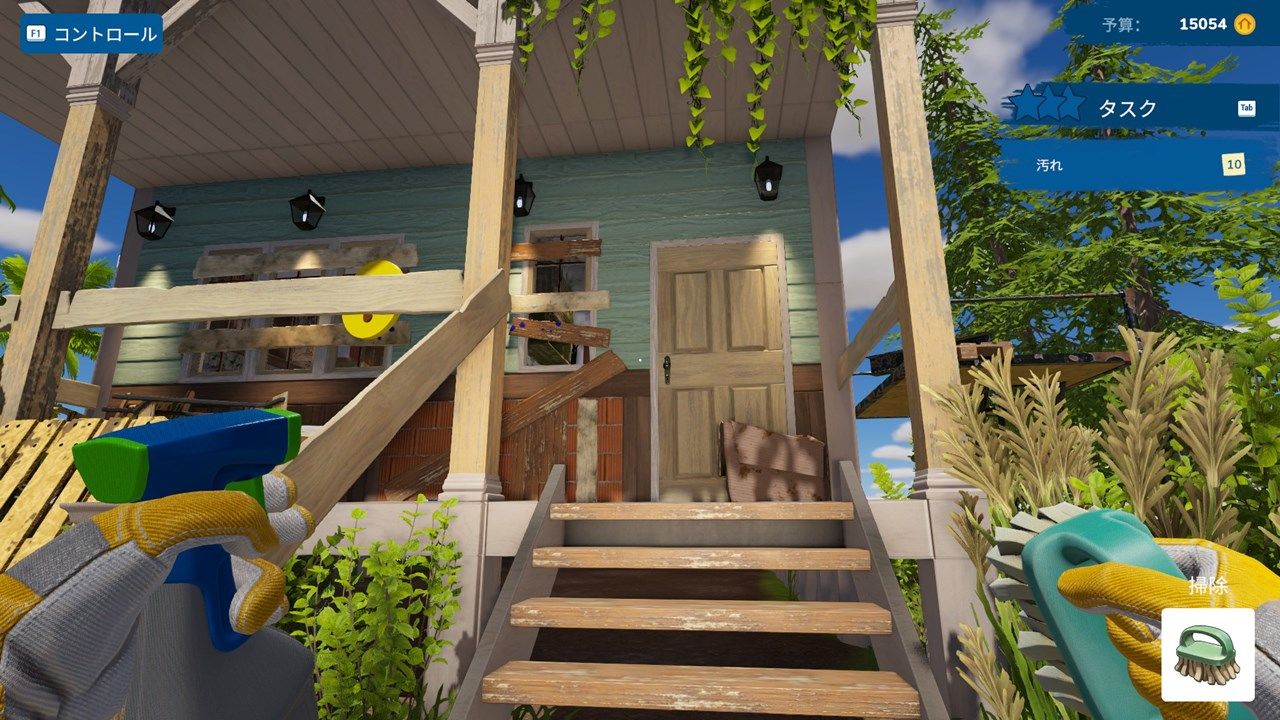 至於在這次的二代方面,本作為一款承襲前作設定的家庭打掃&改裝模擬遊戲。玩家將再度化身為裝修業者,在這個有如廢墟般的老屋中進行清掃改修重建。玩家可以透過第一人稱視點來撿拾屋內的垃圾,活用各種清掃用具來去除屋內汙垢,讓屋子變得整齊乾淨後,再針對壁色與材質等各方面進行裝修重整,並配置新的家具,讓房子煥然一新提高原有價值後再來賣給顧客大賺一筆!