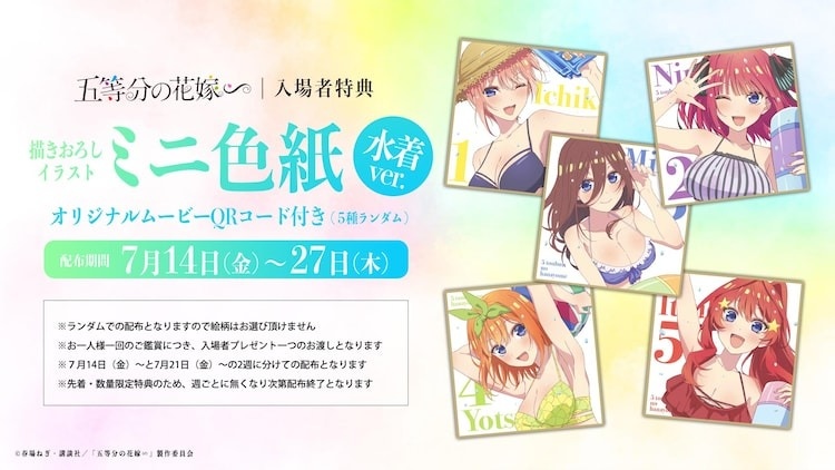 動畫特別篇《五等分的新娘∽》公開預告,同時公開 7/14 戲院先行上映入場觀影禮內容。