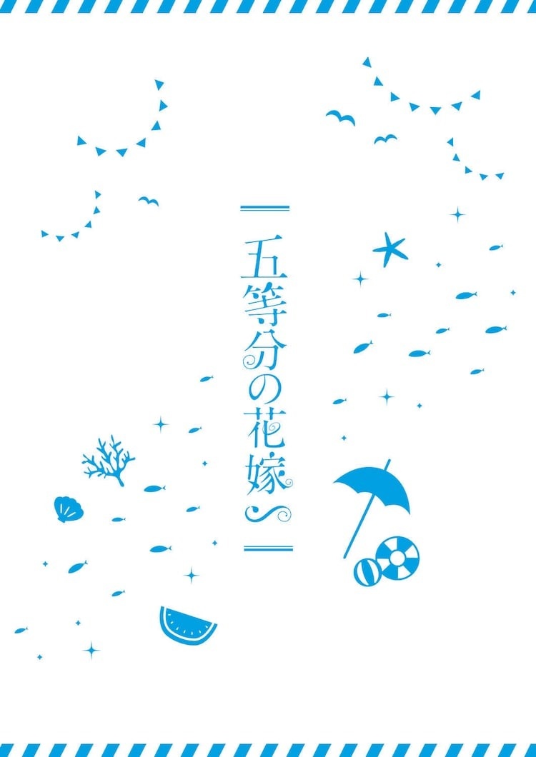 本作在今年夏天正式播出前於日本戲院上映,預告中可以看到中野五姊妹的泳裝姿態,以及對風太郎的態度漸漸轉變的過程,同時也可以聽到新歌「五等分的未來」部分旋律。7/14 起日本方面將在影廳進行三週的先行上映,入場觀影禮隨機發送五姊妹的泳裝造型迷你圖板,背後還有掃描後可以看到特別動畫的 QR Code。