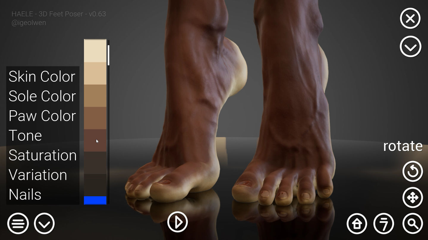 《HAELE 3D-Feet Poser Pro》是一款多功能的足部 3D 拍照&客製化軟體,使用者可針對腳裸級以下部位,調整參數來改變皮膚、指紋、皺紋、血管和指甲的顏色或其他細節,並調整相機角度以及背景,搭配不同的燈光或環境光後進行拍攝。