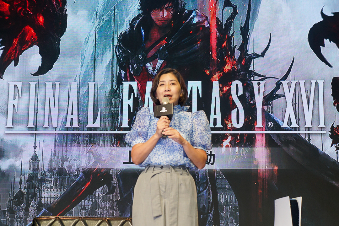 在吉田製作人登台前,索尼互動娛樂亞洲市場部總監趙善盈先開場致詞,非常感謝台灣玩家的支持,讓 PS5 與《FF16》的銷售量創下佳績,也很感謝在場媒體於《FF16》上市後的報導。