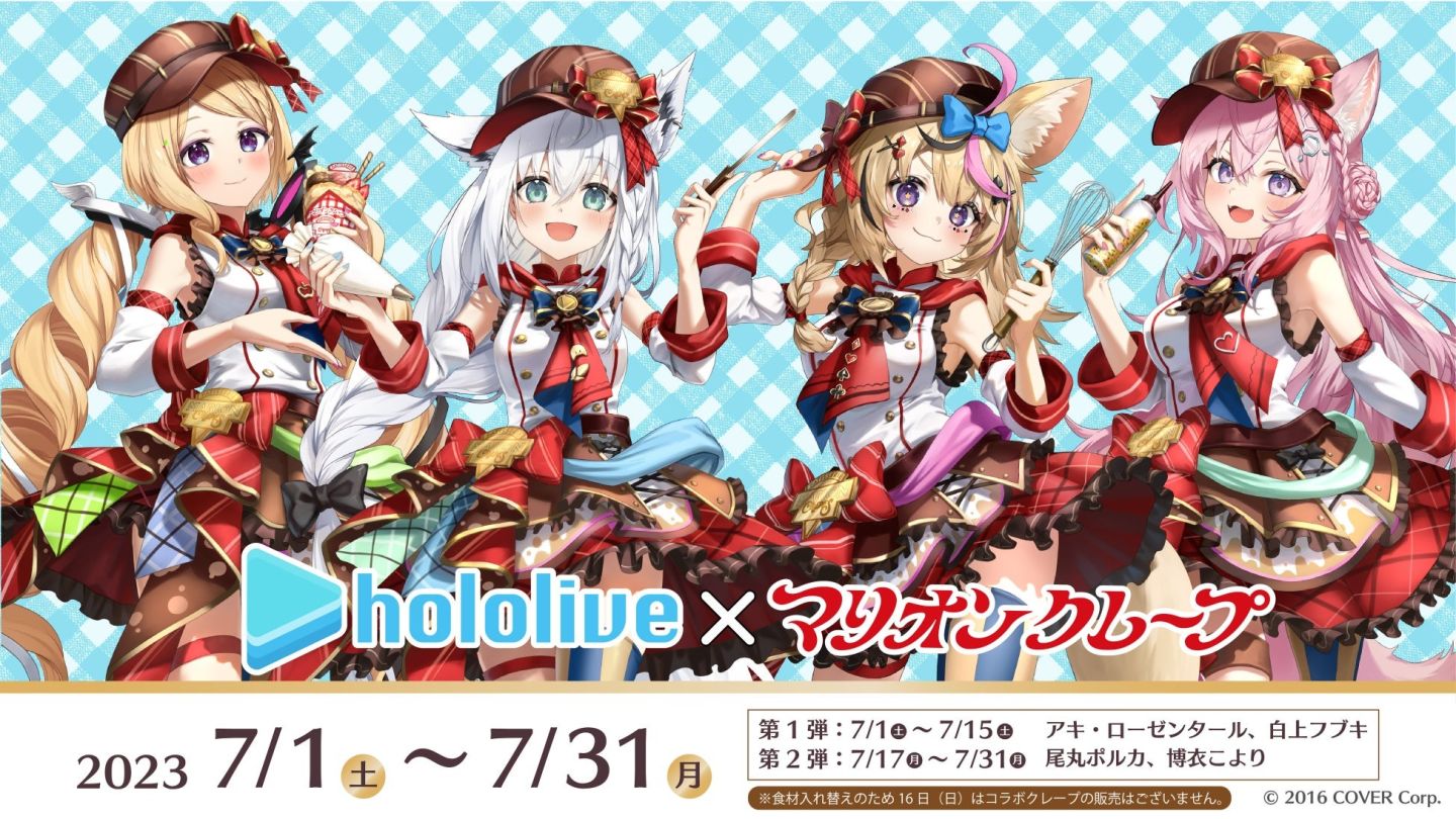日本株式會社中外鉱業今(29)日宣布,人氣虛擬偶像團體 hololive 與日本連鎖可麗餅店「Marion Crepes」(マリオンクレープ)從 7 月 1 日起至 31 日推出聯名活動。