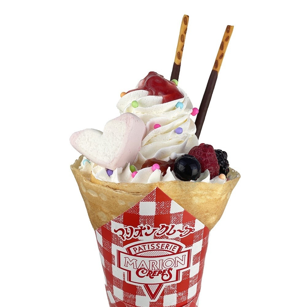 除了限定口味的可麗餅以外,也會同步販售以聯名造型設計的原創周邊,商品陣容包含壓克力立牌(等身大版/迷你版)、可麗餅造型鑰匙圈、徽章、長條毛巾,部分店鋪還會擺放合作成員的等身大立牌,想要朝聖的粉絲們可以去「Marion Crepes」官網確認設置店鋪位置喔!