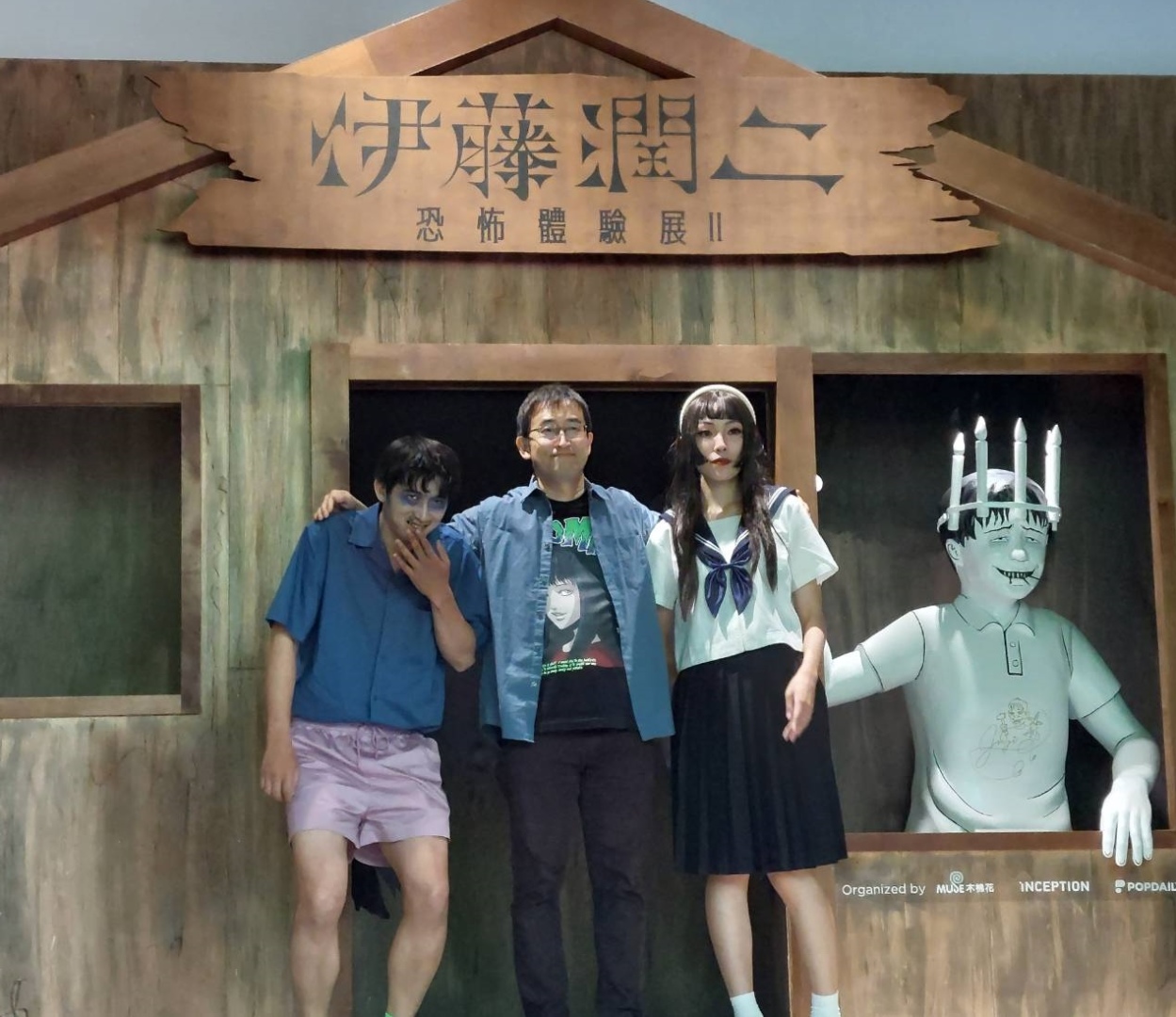 「伊藤潤二恐怖體驗展2」今天(6/29)舉辦開幕記者會,請到作者伊藤潤二為活動開幕、與鐵粉搶先體驗「償命村」&「喚惡鎮」恐怖兩路線。伊藤潤二老師睽違八年再來台,表示自己很喜歡台灣的氣氛,也說到展前已經先到裡面玩過,被特別安排的雙一、富江演員嚇得不輕,他相當喜歡這些詭譎恐怖的氣氛,邀請粉絲親自來體驗。