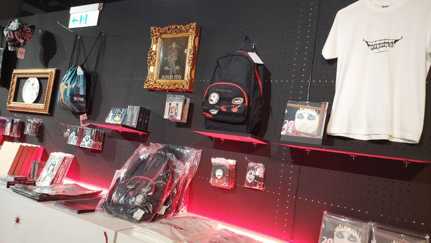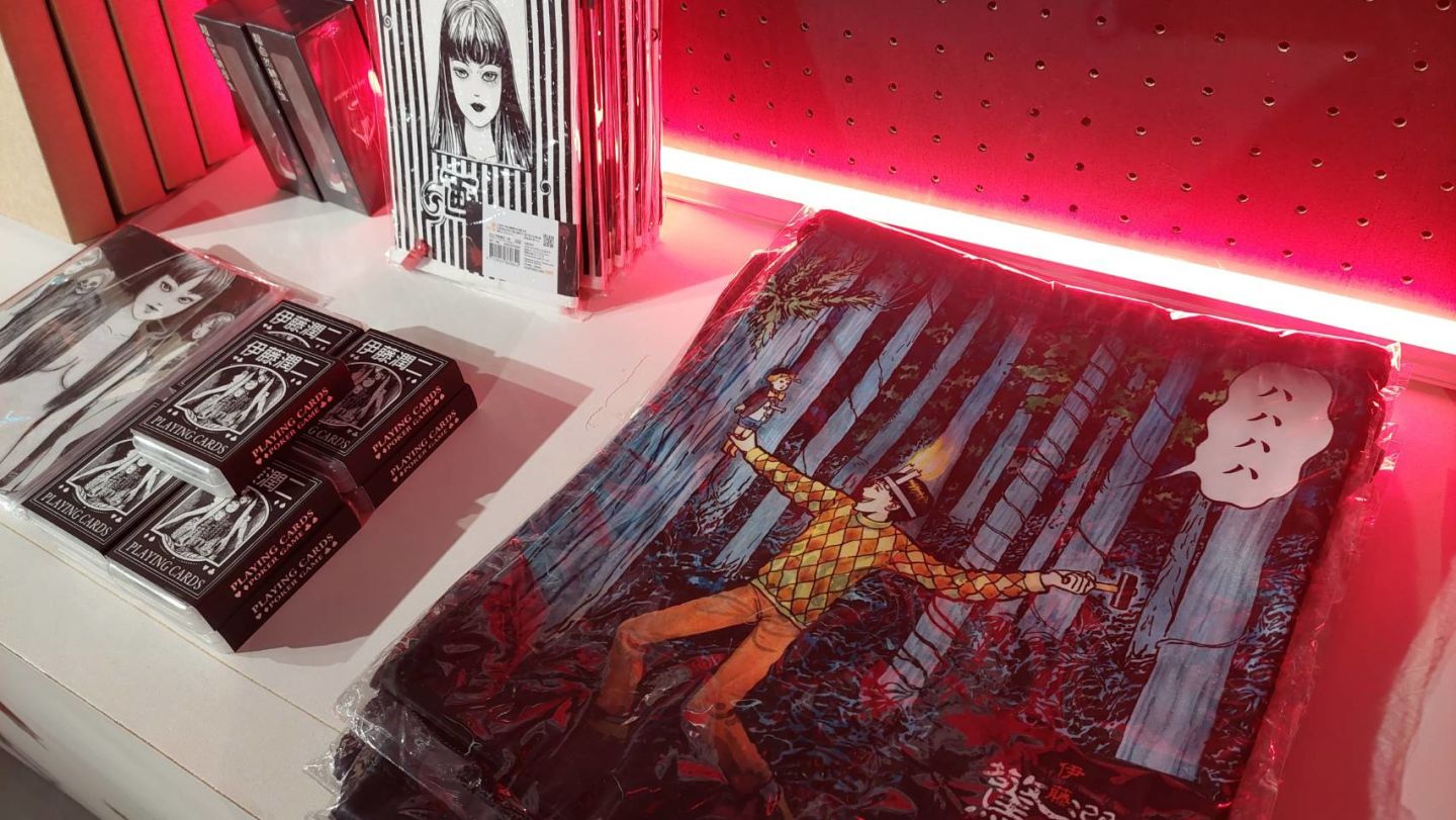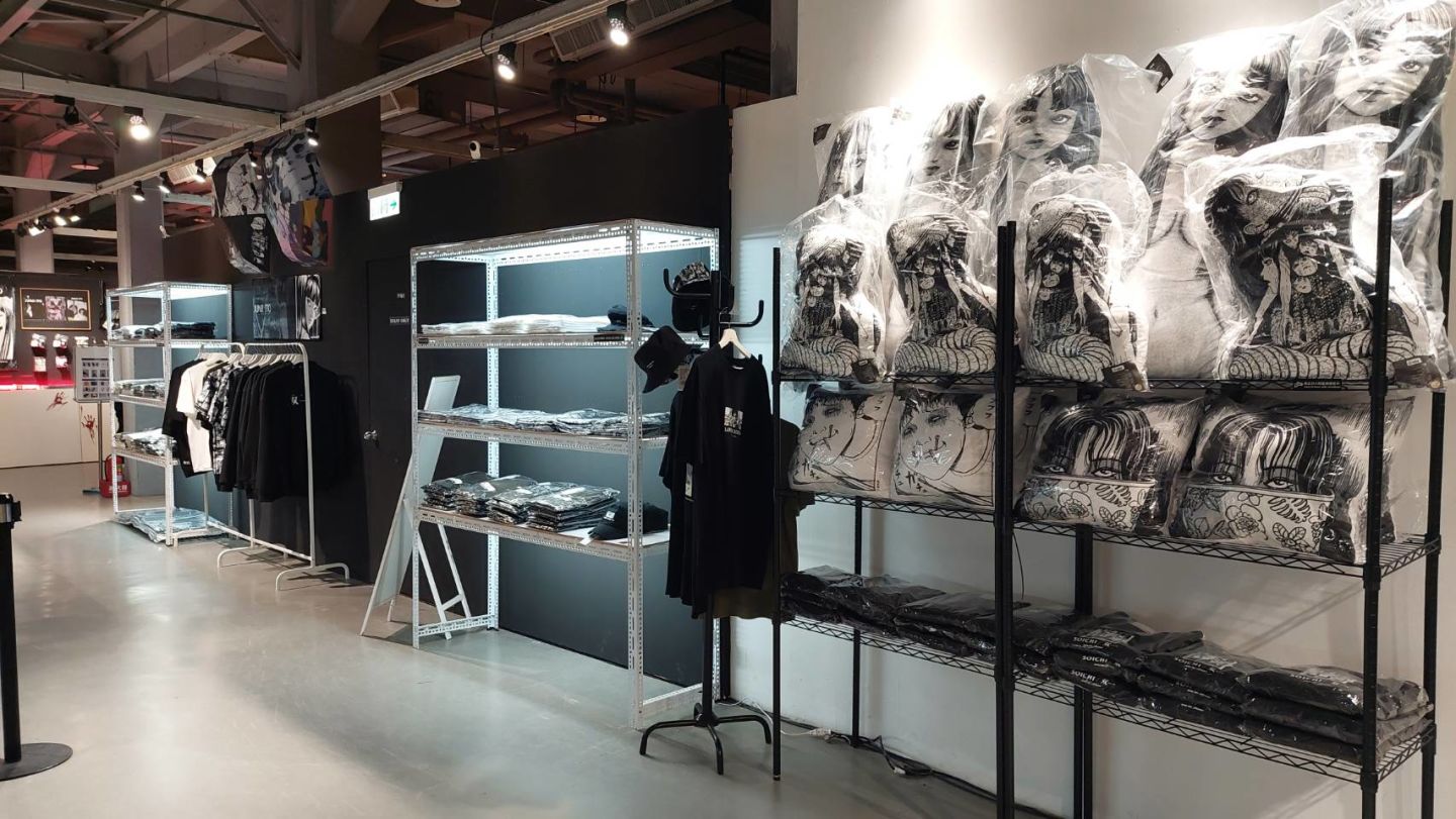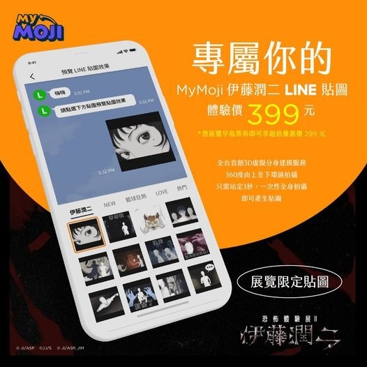 現場還有多款為本次「伊藤潤二恐怖體驗展2」特別製作的潮流商品,從衣服、襪子到滑板、背包、雨傘等樣樣俱全,想要用伊藤潤二元素妝點全身和這個夏天,絕對要在這次的展售區中買好買滿。另外展場特別準備的「MyMoji 3D 趣味建模機台」可以製作個人專屬貼圖,不妨在這裡帶走這款獨一無二的貼圖!