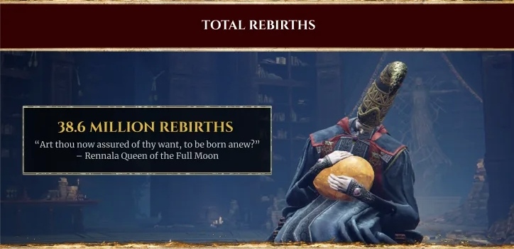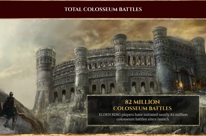 包括玩家已參與 8,200 萬場競技場戰鬥,最常被使用的表情動作為「揮手」,歷經 3,860 萬次重生配點,進行 526,843 次贖罪,獲得了 1,170 萬把暗月大劍。