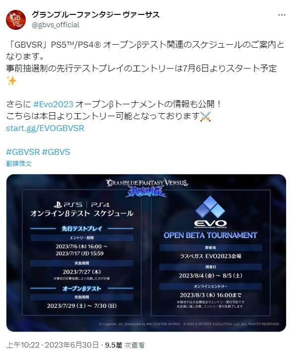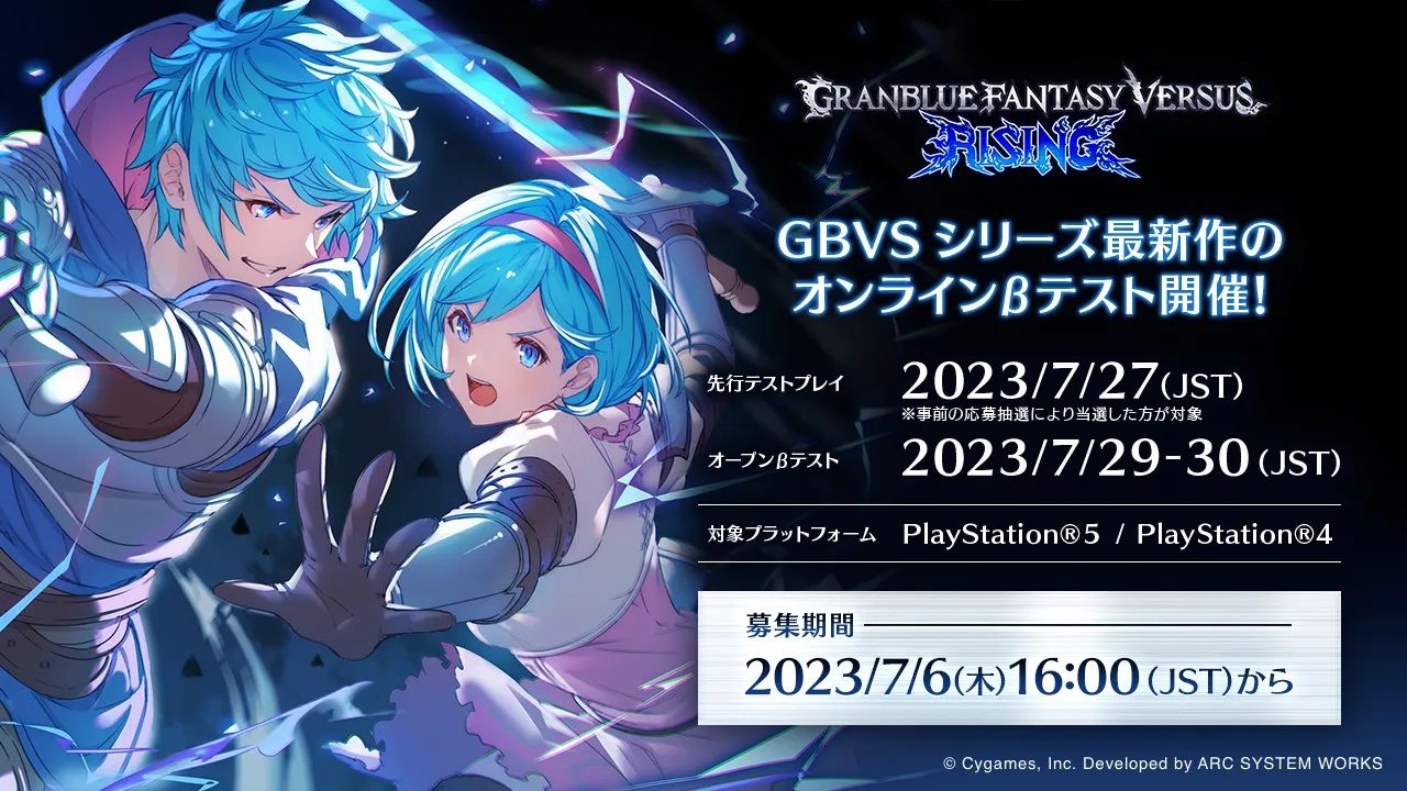 日本 Cygames 預定於 2023 年內在 PS5/PS4/PC Steam 等平台上全球同步推出的《碧藍幻想Versus Rising》(Granblue Fantasy Versus Rising/グランブルーファンタジーヴァーサス ライジング),公開遊戲先行玩家測試與 OBT 公測的最新情報讓玩家確認。