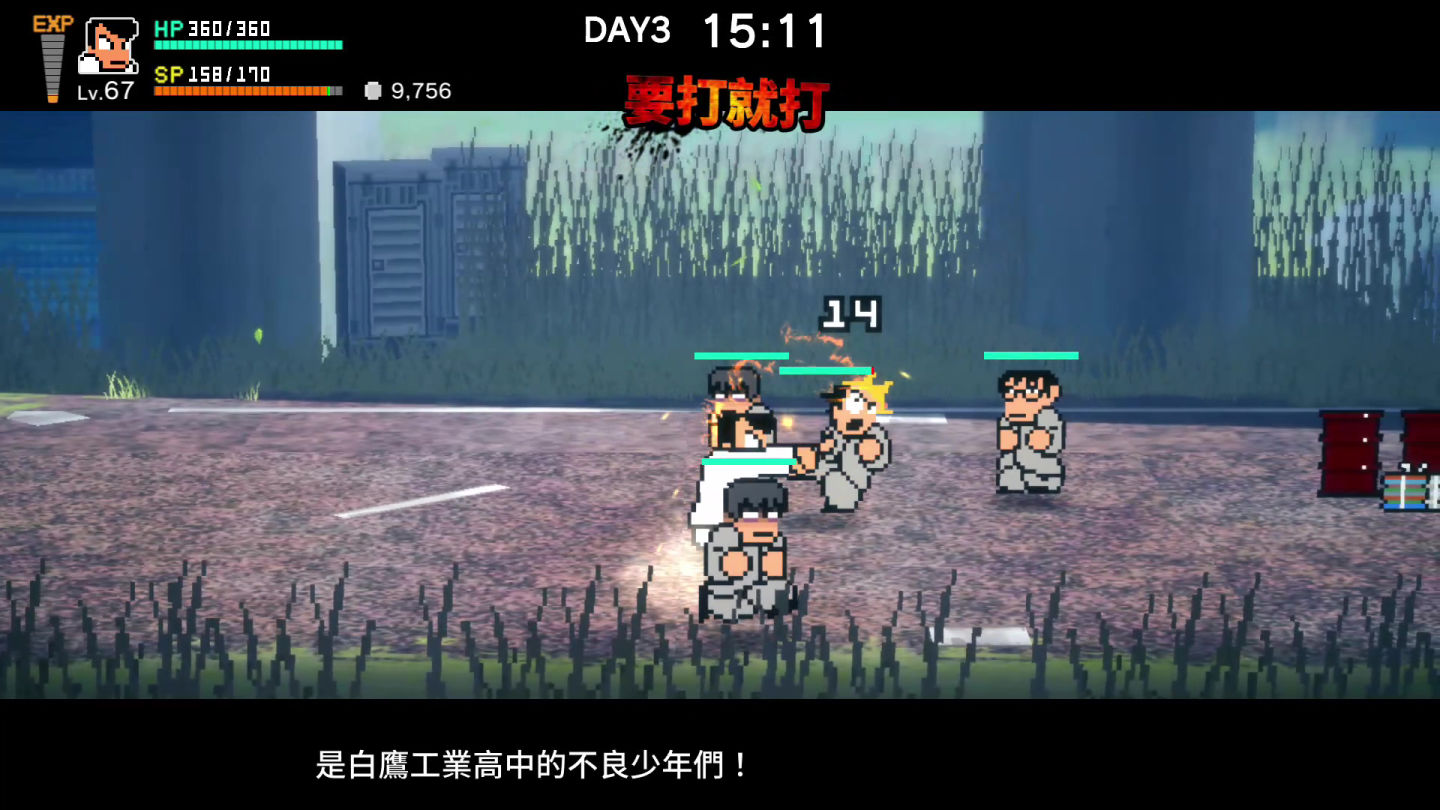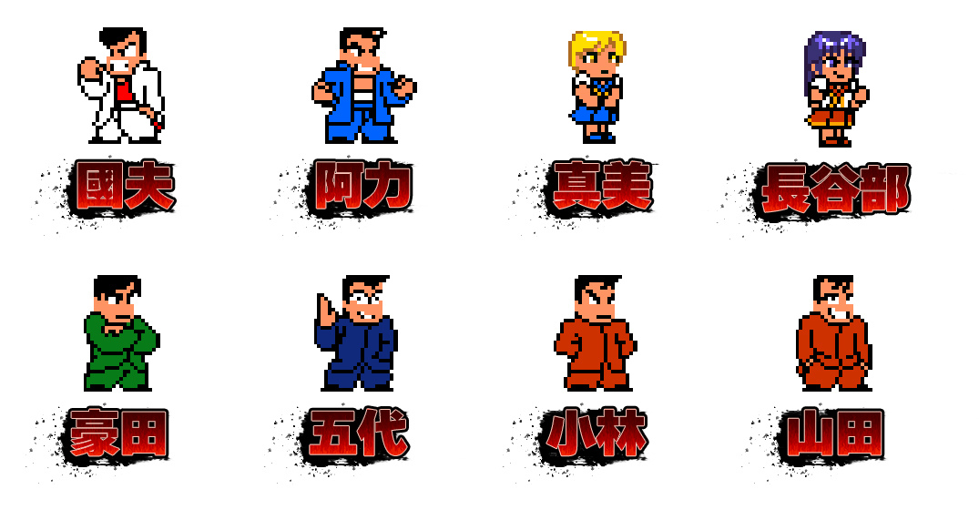 玩家可以擊倒敵人獲得經驗值來提高等級,將升級時獲得的點數自由地分配給各種素質來培養角色。另外,利用擊倒敵人時掉落的道具和金錢,不僅可以獲得有用的裝備,還可以學習《熱血》系列中熟悉的必殺技及新增加的必殺技等,體驗培訓的樂趣和爽快的動作感。