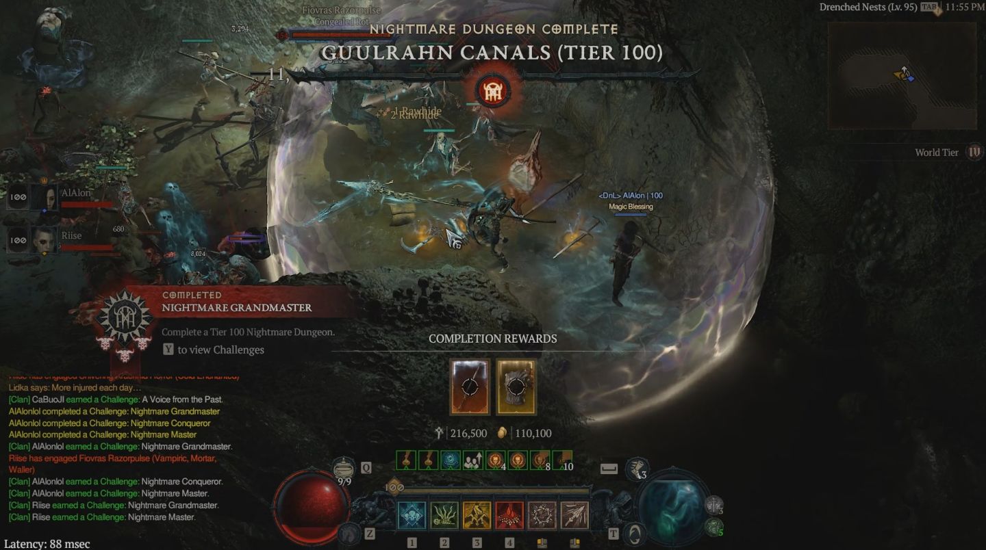 不過也有網友注意到 Riise 一口氣跳了三個惡夢地城成就,也就是其從未打過 50 階以上惡夢地城。AlAlon 則解釋因為賽季快開始了,而 1,000 名百級專家挑戰也已結束,他們原本只當這是自殺任務想挑戰看看,最後通關的成就感也令他非常滿意,即使實質上並沒有掉什麼好東西。