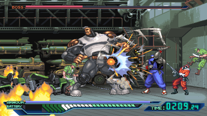 《The Ninja Warriors》最早是於 1987 年推出的橫向卷軸類型動作街機遊戲,並針對 1994 年上市的 SFC 超任主機推出改編版《The Ninja Warriors:Again》。至於這次的《The Ninja Saviors:戰士歸來》,則是邀請當初 Natsume Atari 旗下「Tengo Project」開發團隊睽違 25 年之久再度集結,以 SFC 超任版內容為基礎再度移植強化的重製版本。