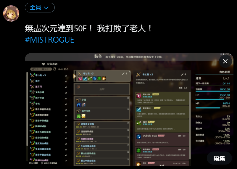 「無盡次元」目標50層!TWITTER活動開始!
