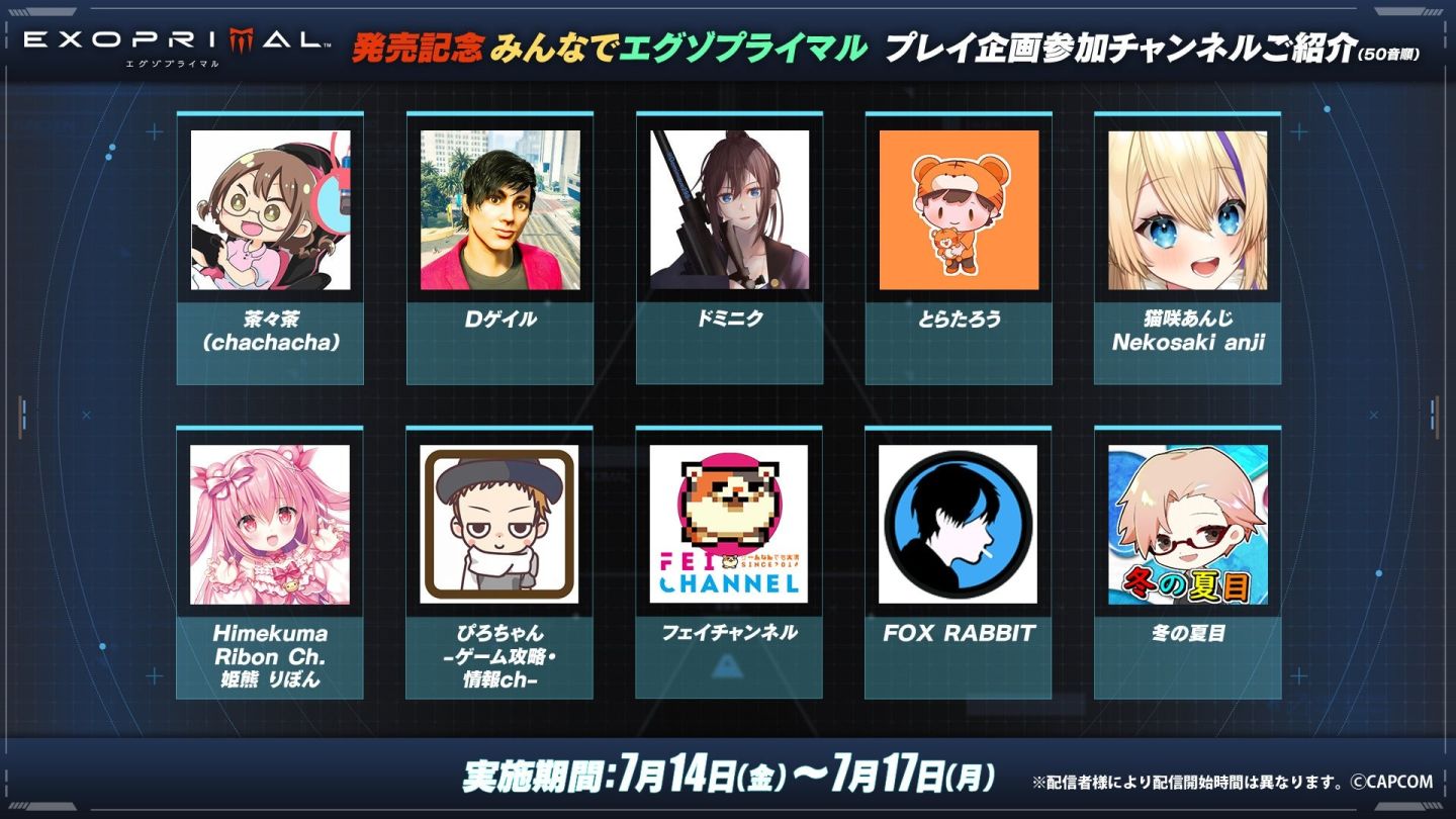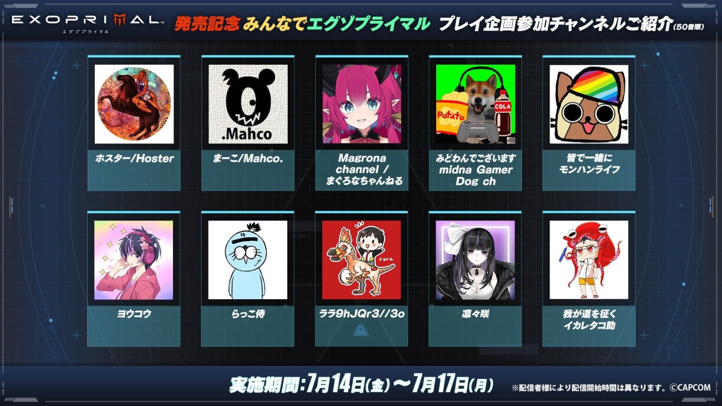 日本 CAPCOM 預定 7 月 14 日起在 Xbox Series X|S/Xbox One/PS5/PS4/PC Steam 等平台推出的《Exoprimal 異域龍潮》,今(12)日宣布遊戲上市當天將展開一系列與人氣實況主和 Vtuber 合作的活動。