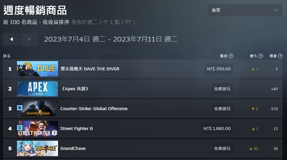《潛水員戴夫》自 2022 年 10 月以搶先體驗版本上架,在當時已獲得相當好評人氣,於今年 6/28 推出 1.0 正式版後,搭配 Steam 夏日特賣期間,更是令其成為 Steam 週間排行台灣第一全球第四的暢銷遊戲。在正式版推出 10 天內,即已銷售破百萬套。