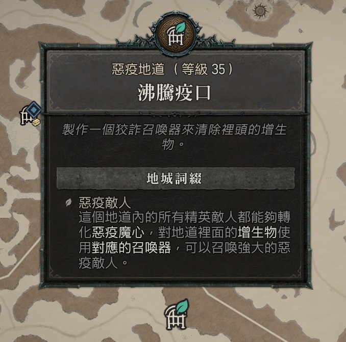 要提高獲得惡疫魔心的機率,最佳地點則是賽季新增的「惡疫地道」類型地城,這是可重複遊玩的地城。四散在世界各處的 6 個地城組成了惡疫地道系統。擊敗惡疫怪物之後,玩家會遇到兩個增生物。其中一個必定是憤怒類型,另一個則會根據地城類型變化成不同類型的惡疫魔心。