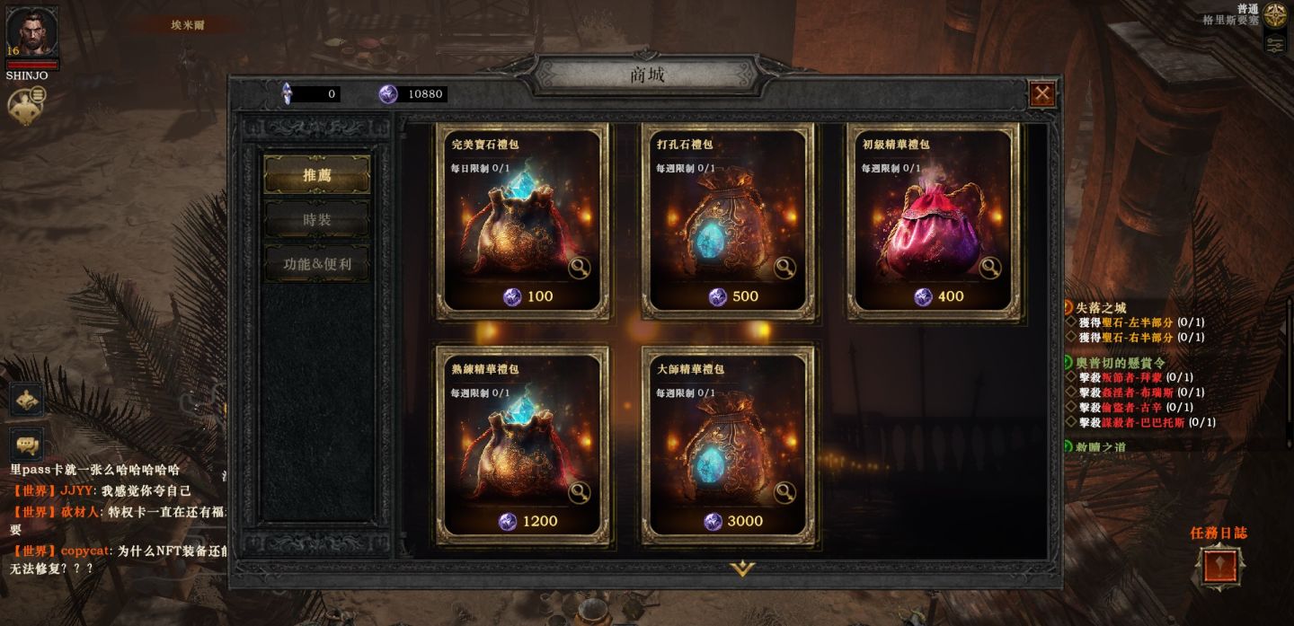 與此同時,交易市場亦隨之熱絡不少,不論在 NFT 交易量、玩家之間的線下交易亦或是遊戲代幣混沌石的使用量,均隨測試時間的拉長、玩家等級提升,而有著顯著區別。其中最值得關注的便是商城中最具熱門的品項,均為玩家初期迫切需要之用品,包括:護符秘鑰、復活卷軸、拓展背包以及時裝。尤其是背包欄位的拓展,象徵著玩家在野外打寶時,可以裝載更多的藥水出門,也可以帶著更多戰利品滿載而歸。