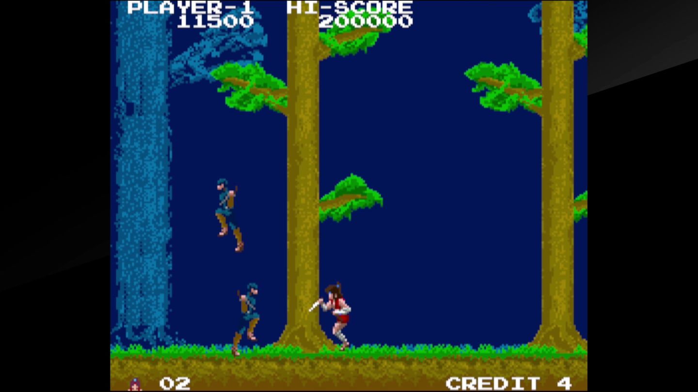 《THE LEGEND OF KAGE》是為了要救出被魔鬼軍團綁架的「霧姬」,需要操縱年輕忍者「影」進行戰鬥的動作遊戲。穿越草叢、城牆還有在城裡內前進,打敗頭目,拯救公主吧。