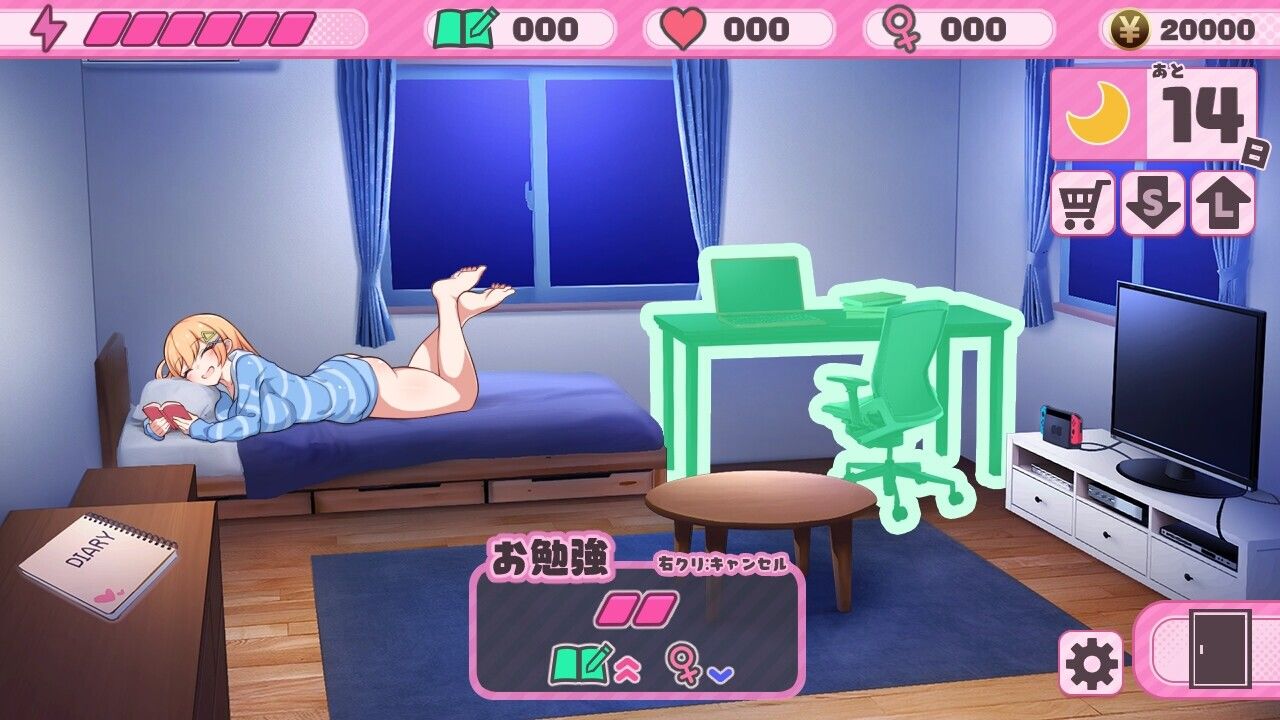 遊戲事件總數高達 100 以上,可以對在房間休息的杏奈做色色惡作劇,也可以一起玩小遊戲「超級亂鬥」。無論是讓人會心一笑的事件或色色事件,都能藉此感受到杏奈多樣化的魅力。