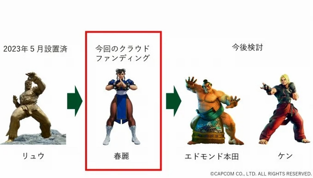 日本奈良縣橿原市與 Furusato Choice 網站宣布,自即日起到 2023 年 10 月 23 日為止,共同合作舉辦募款活動,並將用這筆資金來製作《快打旋風》人氣角色「春麗」的銅像與特製人孔蓋。