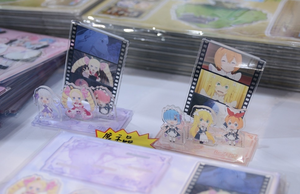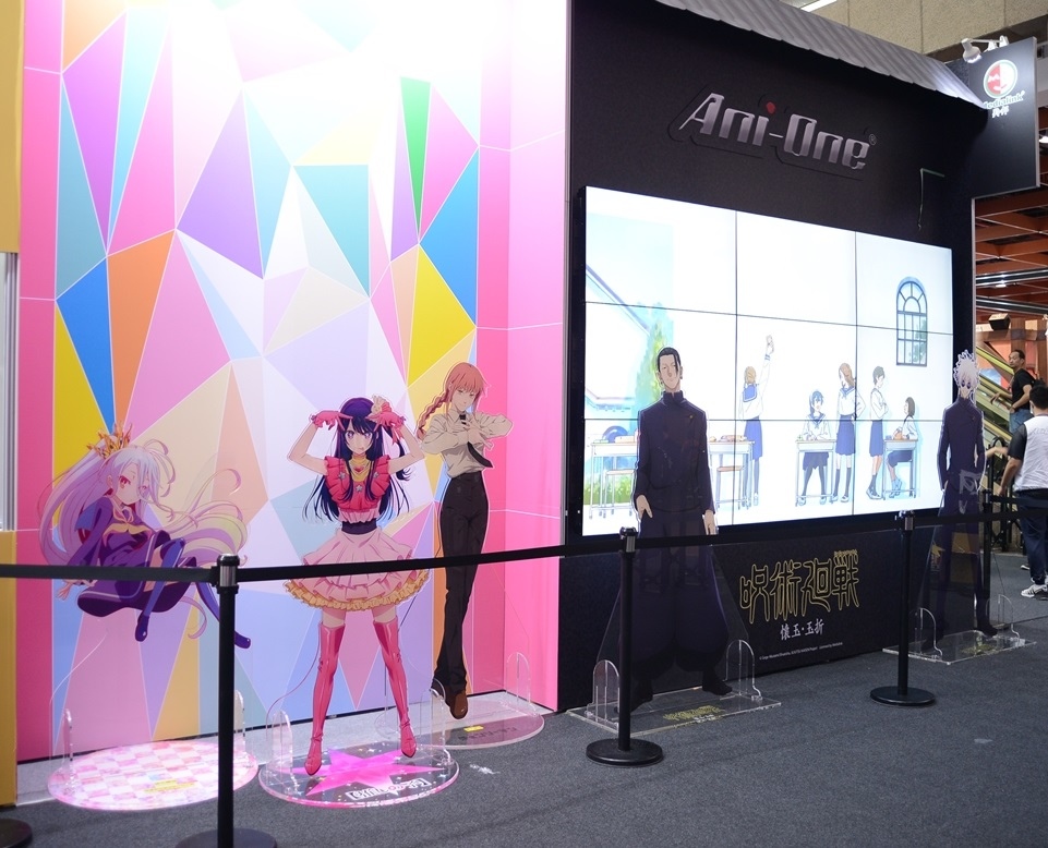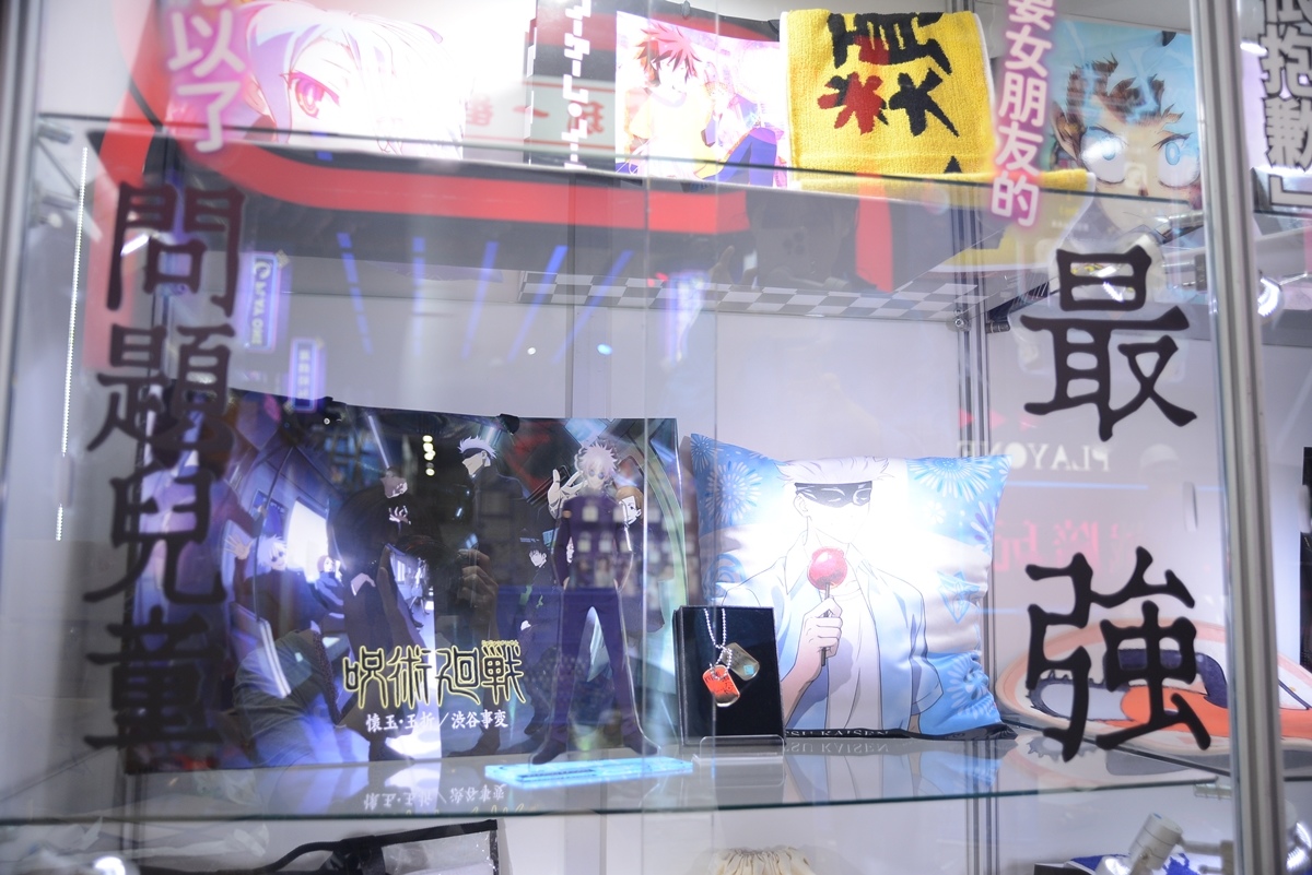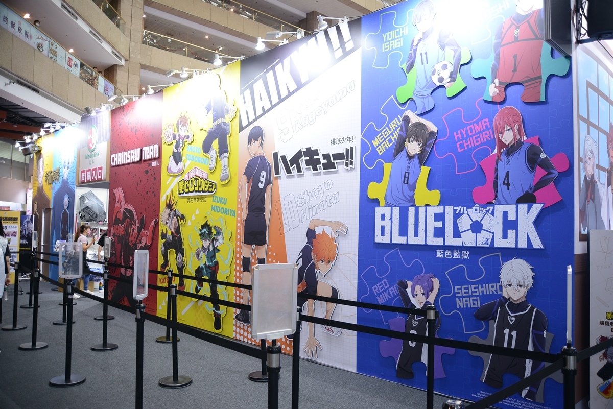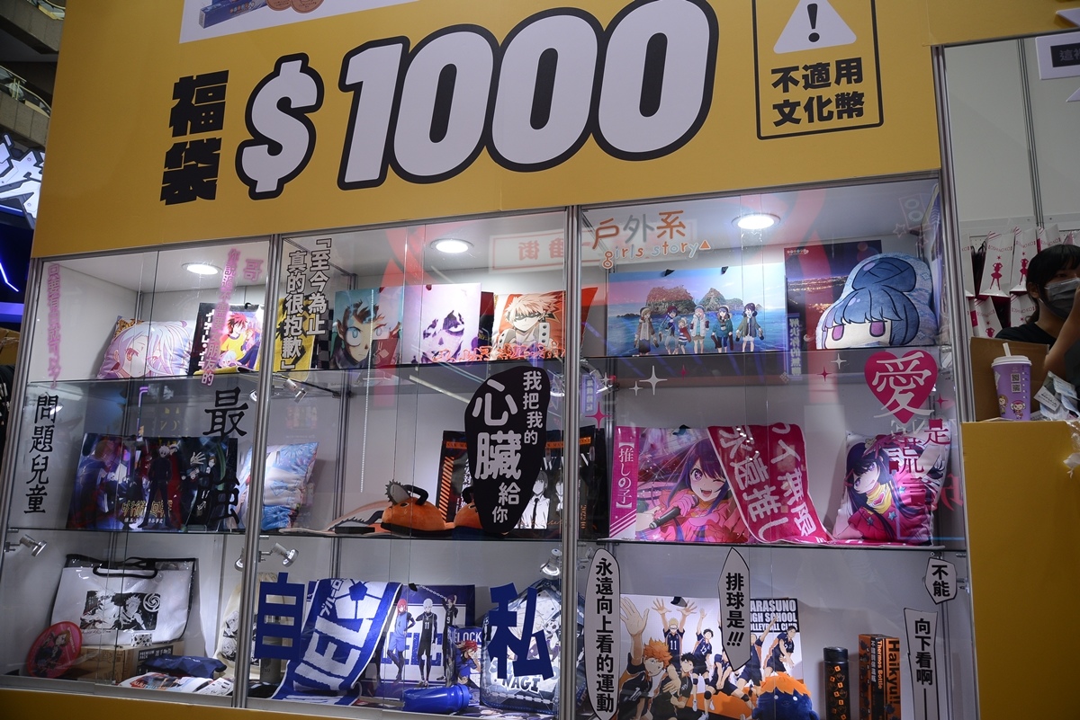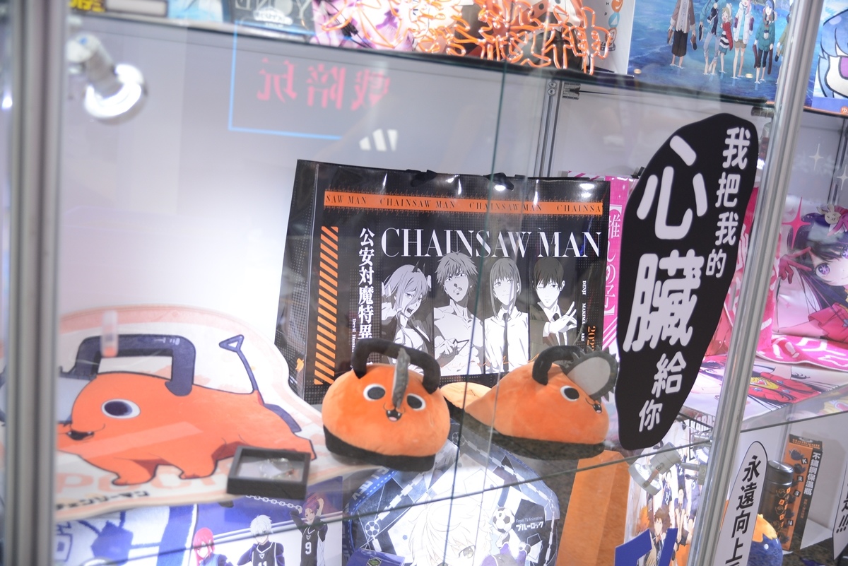放著九大強力作品福袋的櫥窗在每一格的玻璃窗上貼了情境式台詞,直接把粉絲們帶回作品中,這種直擊人心的共鳴銷售手法真是太過分啦!不過商品也是有目共睹的精緻,這次有等身壓克力立牌以及《水星的魔女》、《【我推的孩子】》等一系列的新商品,即使在漫博會場外也有《鏈鋸人》快閃店可逛,如果不想人擠人,那麼造訪快閃店也是個很好的選擇喔!不過每年漫博的獨特祭典風情,還是會想要到場感受一下的啦!畢竟超好看的強作大圖只有這裡才有呢。