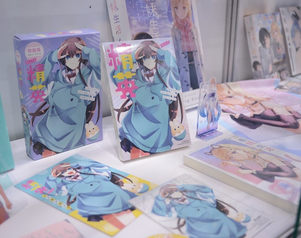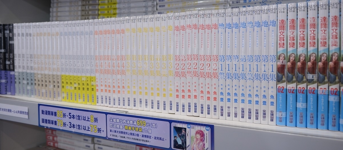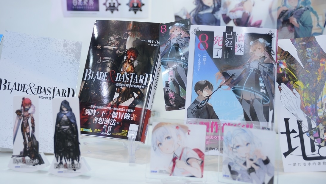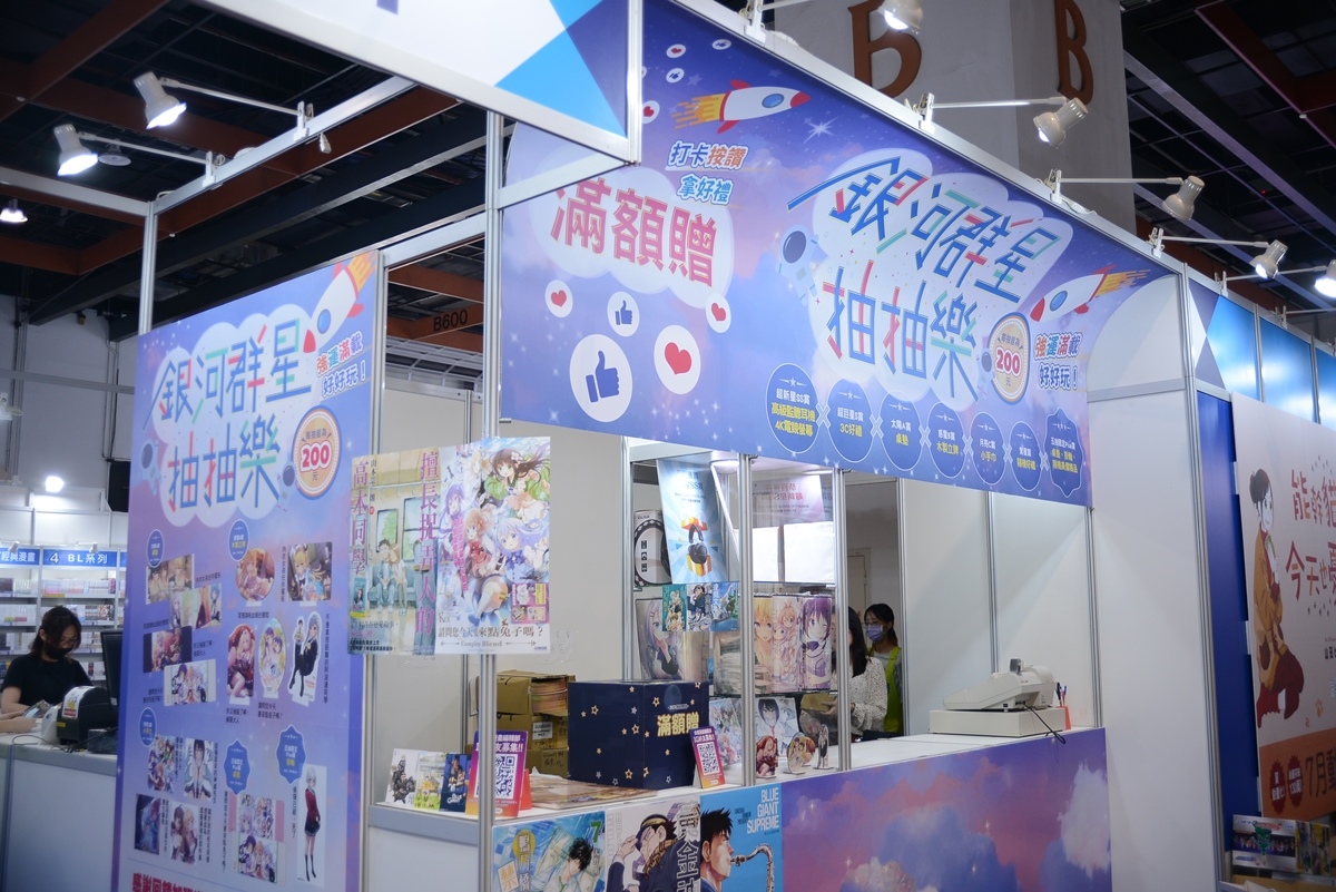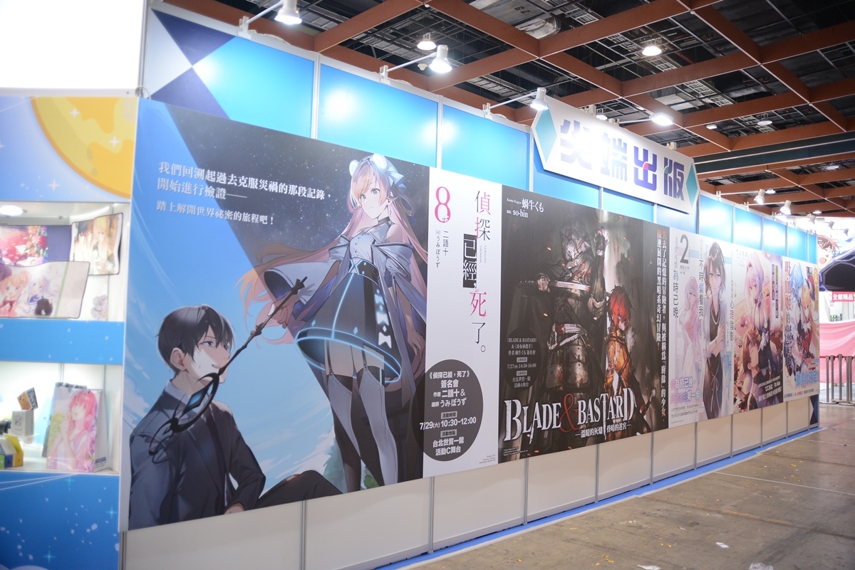 將最注目的書櫃擺得琳瑯滿目,讓讀者可以一眼就看到這次想要搶購的套組有哪些精品,進到攤位就可以拿起並結帳的動線相當優秀!熱門手遊《蔚藍檔案》畫冊也在本場首賣,不少老師們的目標肯定是這本!《地。》簽名會套組現場購買就可參加活動,希望每位粉絲都能無事入手!