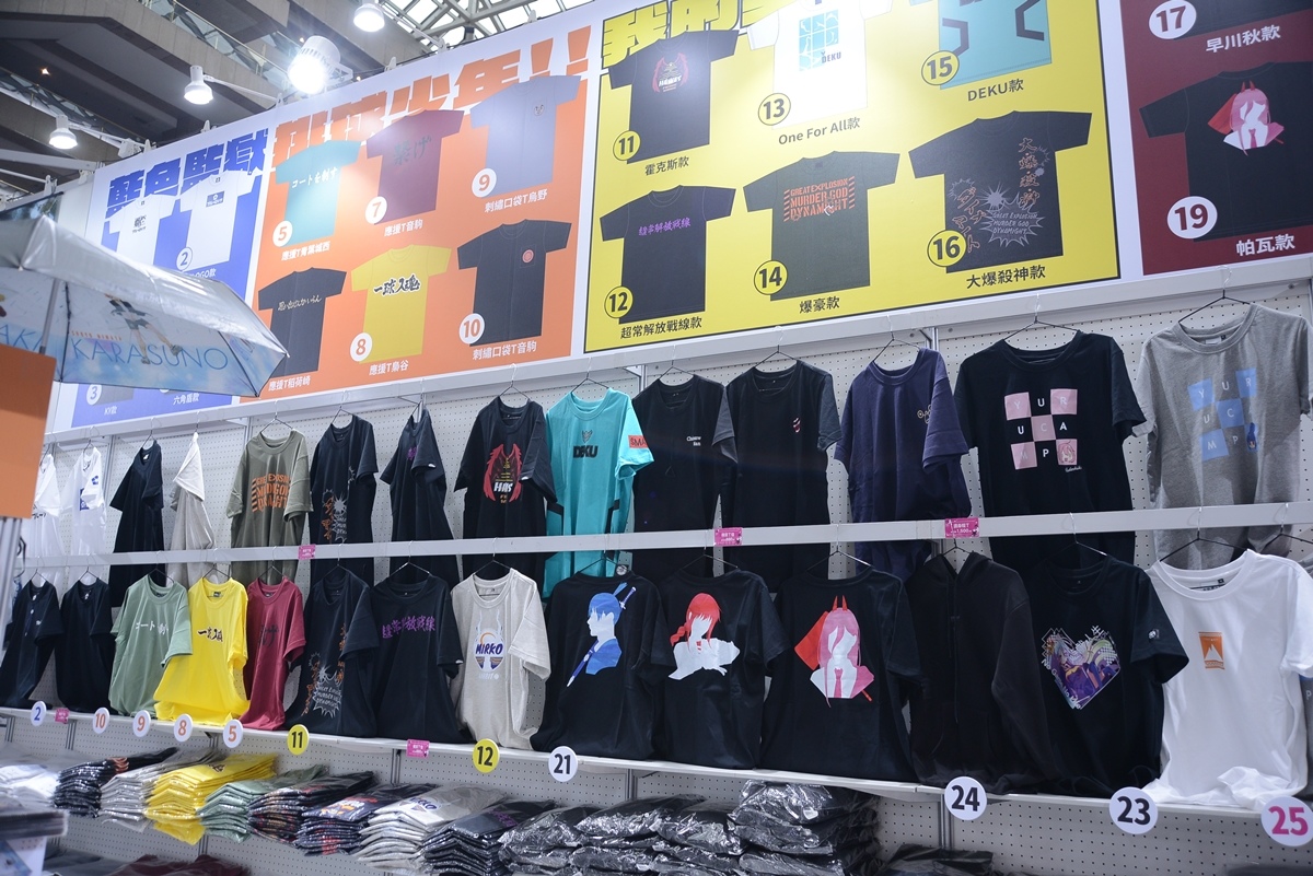本屆漫博最特別的攤位大概就是三麗鷗與 UNIQLO,UNIQLO 特別出展,也帶來了最新的《死神 千年血戰篇》UT 販售,以及八月才要開賣的《鏈鋸人》UT 展示,現場還有帥氣的 AR 貼紙可索取!三麗鷗則以酷洛米為這次的特別明星,放在攤位入口的展示相當吸睛,其他的參展明星還有蛋黃哥、布丁狗、大耳狗喜拿、酷企鵝等等,三麗鷗鐵粉也不要忘記明天(7/28)的舞台活動,可以與酷洛米跟美樂蒂互動喔!