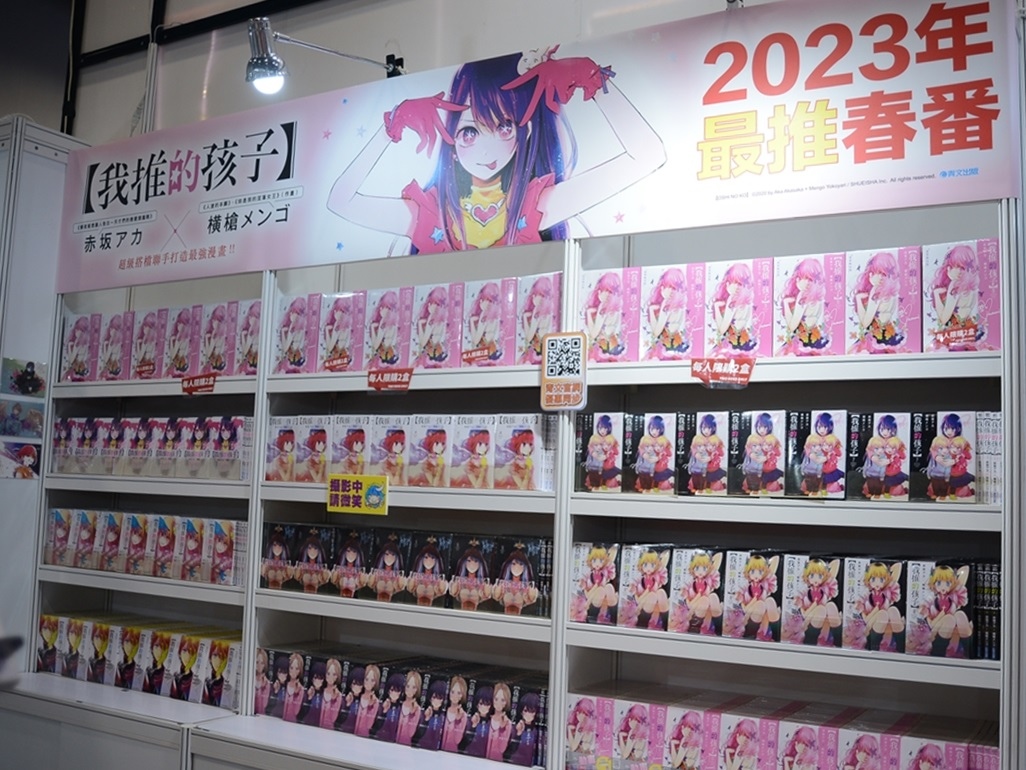 挾著四月新番最矚目的威名,《【我推的孩子】》漫畫兩位作者這次將來台舉辦簽名會!而青文出版也搭配活動,將一整面外牆製作成《【我推的孩子】》主題,也使用了各集的美麗彩稿加上炫目燈光,吸引粉絲們的視線!特別製作的炫光壓克力吊飾也非常適合小愛的明星光環,不收可惜!