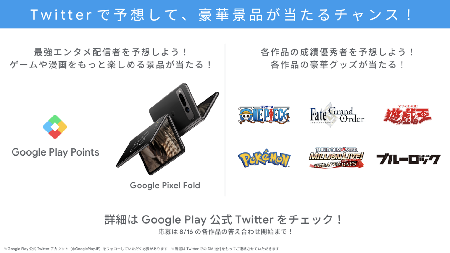 節目主持人由百花繚亂擔任,參加者包含人氣實況主「SHAKA」與「よしなま」,以及來自虛擬偶像事務所彩虹社的葛葉/叶/笹木咲/壹百滿天原莎樂美等人氣 Vtuber 們,此外還會舉辦預測冠軍和各作品優勝者的活動,有機會抽到 Google Play 點數和折疊式手機「Google Pixel Fold」喔!