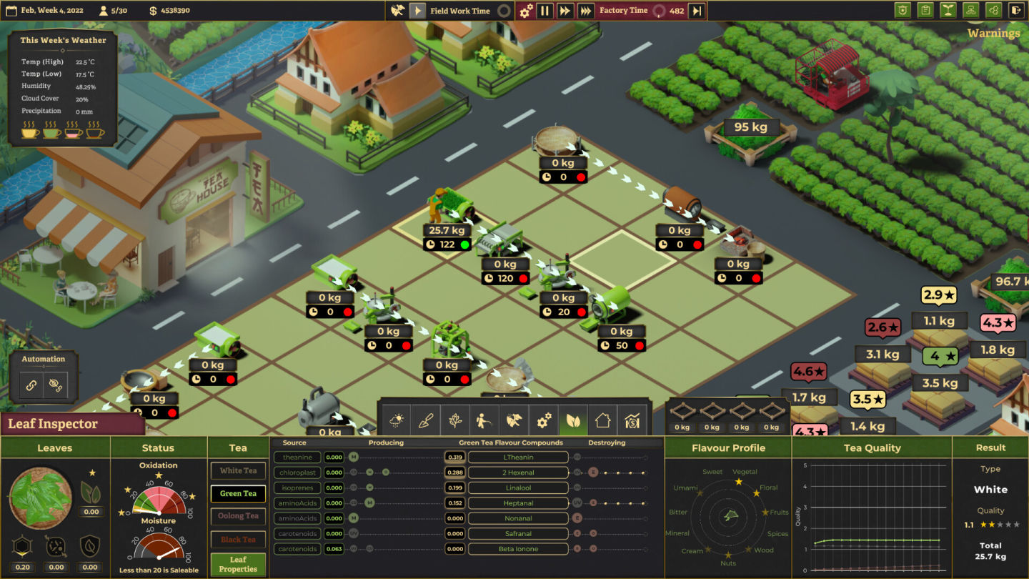 本作自 2021 年 4 月開放搶先體驗以來獲得 Steam 玩家好評,當前版本提供五個不同的農場和八種類型的設備供玩家選擇,預計正式版上市後將追加更多設備、天氣、不同文化的茶農和加工技術等內容,如果喜歡喝茶或是對茶葉生產歷史和文化感興趣的話,不妨來試試看這款《Tea Garden Simulator》喔。