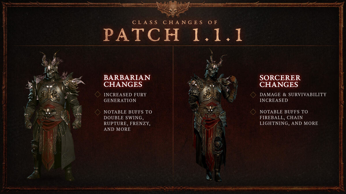 《暗黑破壞神4》(Diablo 4)於今(9)日凌晨正式推出 1.1.1 版本更新,實裝自 7/29 營火閒聊時已提到的更新項目,包括全職業能力、獨特務品、怪物密度、頭目與盜寶哥布林掉落等等多項修正。以先前社群抱怨的野蠻人與魔法使為首,在本次更新中各職業大都獲得正向調整。