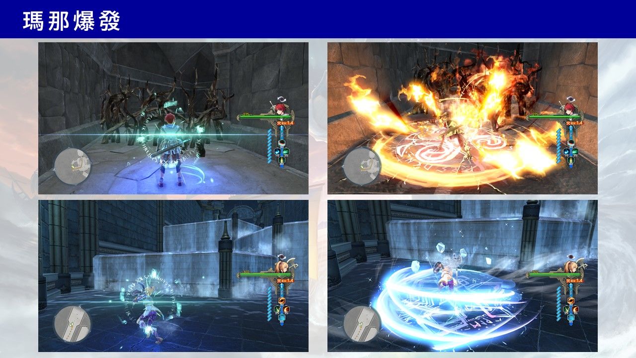 近藤季洋:是《伊蘇》初代、二代本身,與其說那是款動作遊戲,不如說是道具遊戲,會需要使道具能力解謎。現有的瑪那動作會進化,也有新動作會出現。例如察覺隱形物品的視覺能力,雖然沒有小遊戲,但是會有需要瑪那動作的劇情過場。畫面上會很像競速遊戲。