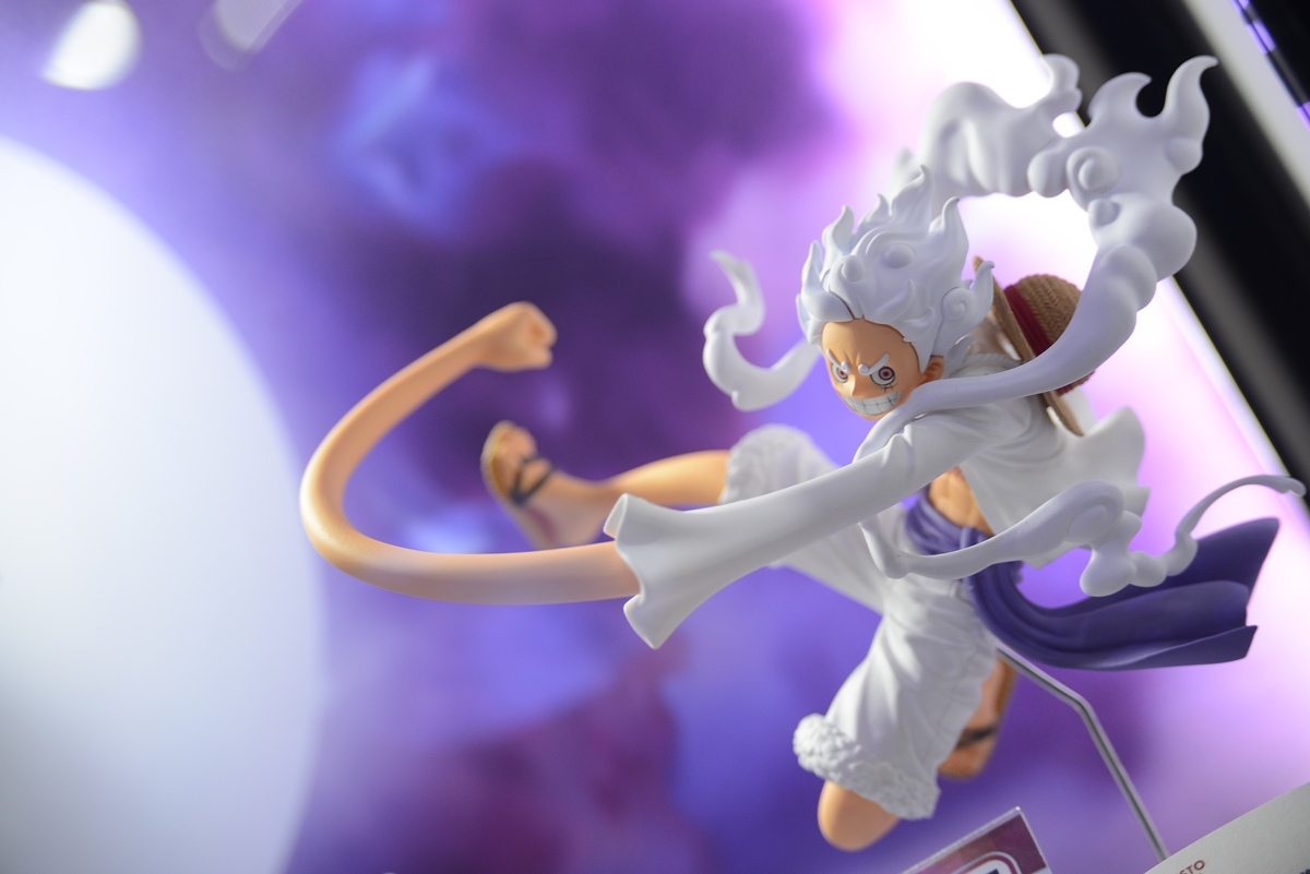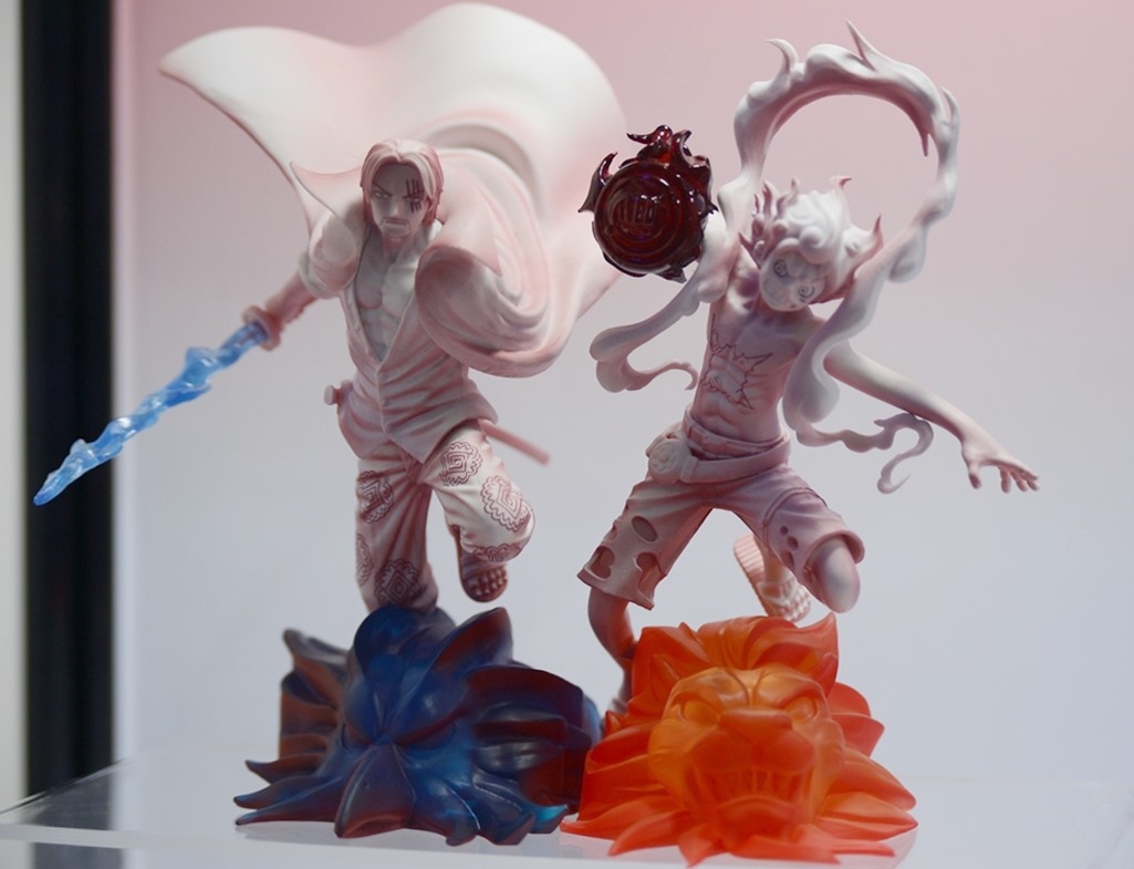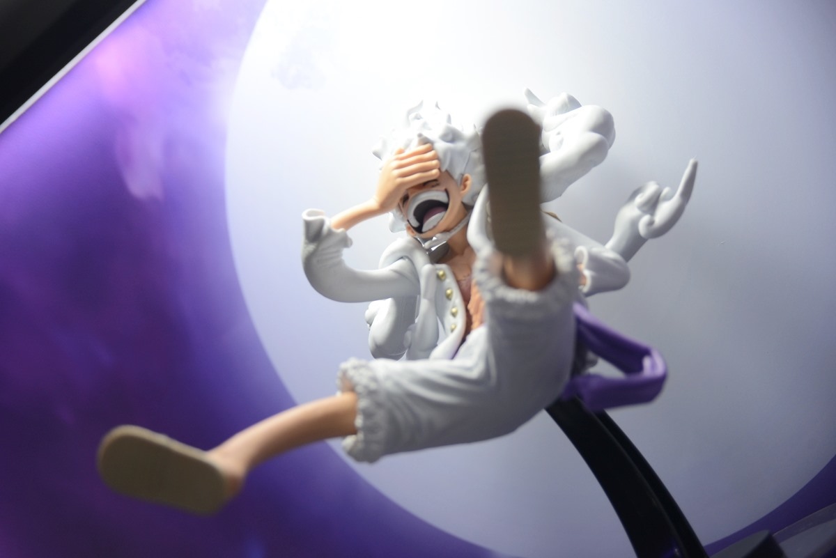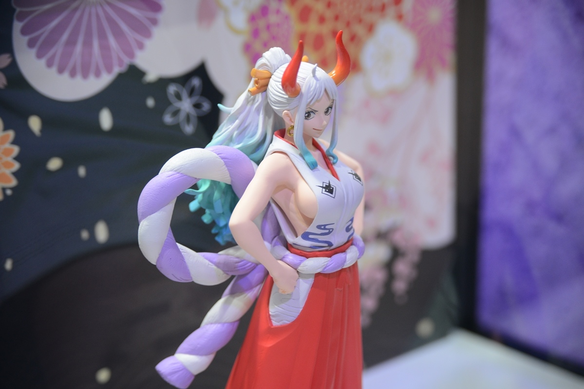 和之國篇目前正是精彩好看的時候,展場中特別擺出魯夫五檔的拍照牆,還有一整櫃的白飄飄魯夫,配合背景拍照效果真好;當然也不能忘記和之國其他重要登場角色,以及在電影版中搶盡風頭的歌姬美音 WCF 系列,「死不認錯~」的手勢,還有小時候的美音以及黑化美音,呈現電影版中美音的各種型態。
