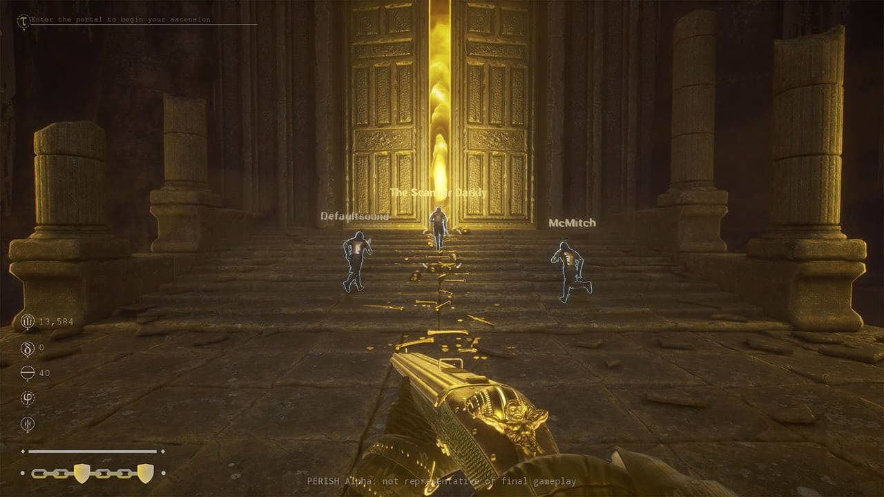 《PERISH》是一款以第一人稱視角進行、能單人遊玩也支援最多四人協力合作的動作射擊遊戲,玩家在遊戲裡扮演因過去所犯下的罪行而困在於煉獄中,具有肉體的靈魂「Amyetri」,為了踏上極樂世界,要拿起刀劍或槍械等武器與惡魔戰鬥,收集名為「Danake」的黃金供奉到神殿中完成儀式。
