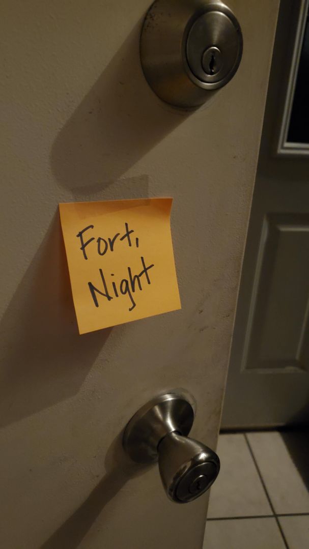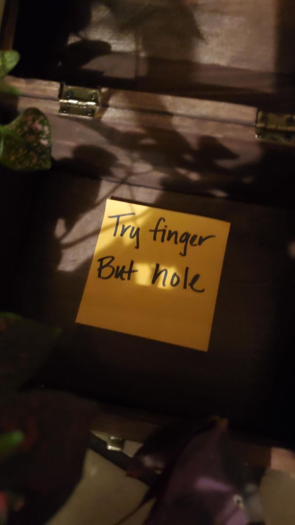 作者非常感謝大家給予意見之餘,也表示會將後續結果更新在討論區中。四天後她再度發文,很高興這場尋寶活動非常成功。她老公首先好奇門上為什麼有張便條紙寫著「Fort, Night」,隨後走上階梯看到「Dog Ahead」後,就如同發現聖誕禮物的小孩,一路尋線找到寶物。